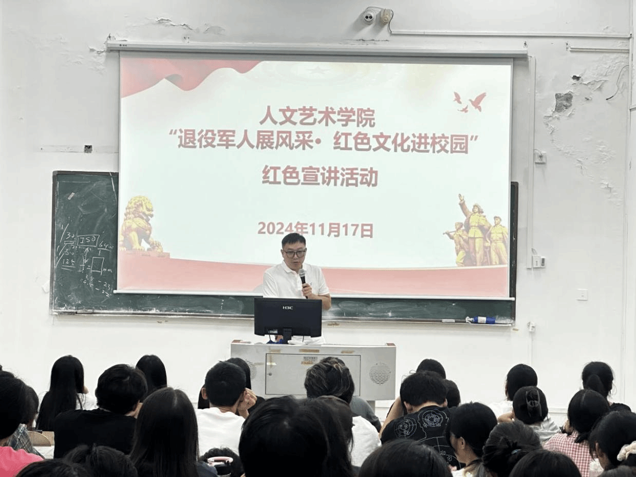 根据校员工工作处(部)的工作安排,深入实施时代新人铸魂工程,运用传承好红色基因,教育引导广老员工增强践行“两个维护”的高度自觉,在公司党总支的工作指导下,beats365亚洲版官网于11月17日晚在第一教学楼509教室开展“退役军人展风采·红色文化进校园”红色宣讲活动,现场共有150余名2024级同学参加,由公司学工办徐超老师主持。