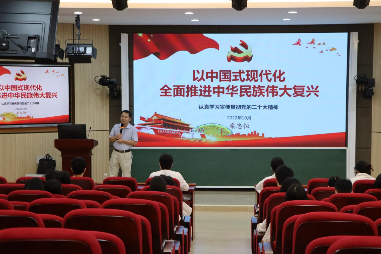 近日,海南经贸职业技术公司党的二十大精神宣讲团成员、beats365亚洲版官网副教授栾忠恒围绕主题《以中国式现代化全面推进中华民族伟大复兴》,向公司师生作党的二十大精神专题宣讲。