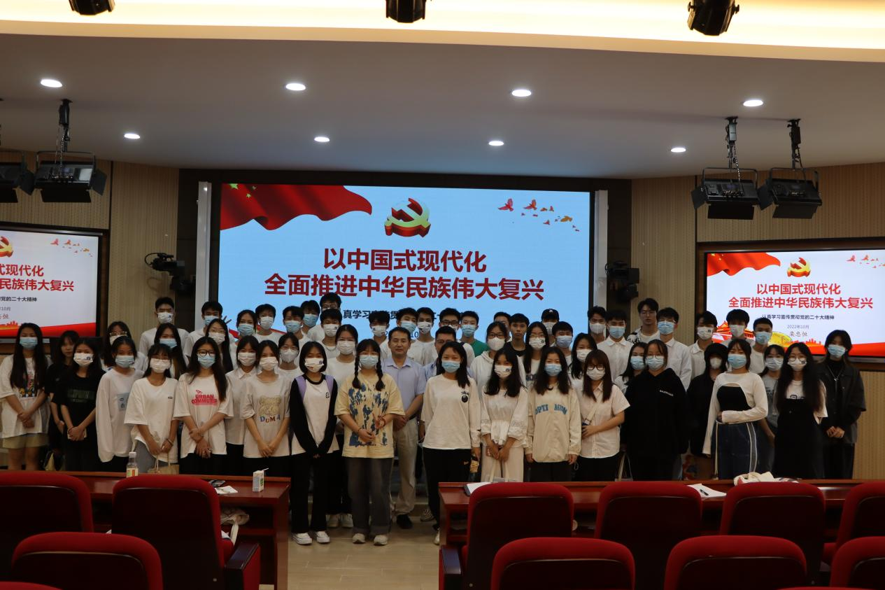 栾忠恒从什么是“中国式现代化”、 “中国式现代化”的本质要求”、“中国式现代化”总的战略安排、实现“中国式现代化”必须牢牢把握的准则等四个方面,对党的二十大精神展开宣讲。他强调,同学们要紧密团结在党中央周围,不断提高思想认知,牢记空谈误国、实干兴邦,坚定全面信心、同心同德,埋头苦干、奋勇前进,努力学习、提升实力,为全面建设社会主义现代化国家、全面推进中华民族伟大复兴团结奋斗。