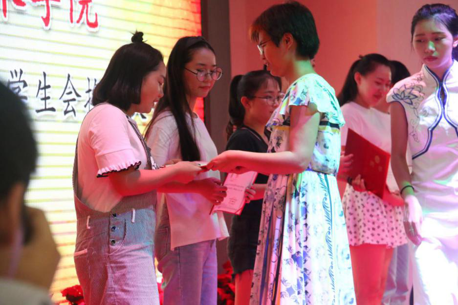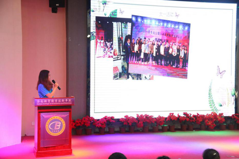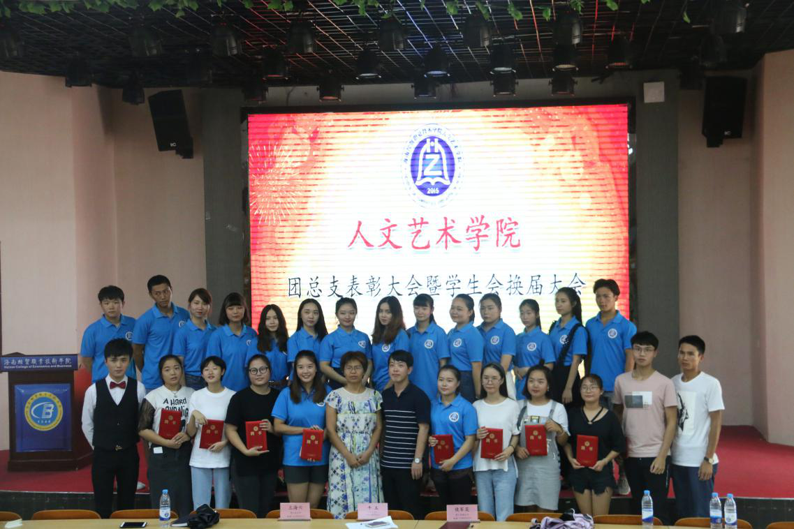 伴随着悠扬的团歌,本次大会拉开了序幕。首先,由学工办主任王海云、副主任侯军英为上届优秀团学干部颁发聘书。其次,由上届团总支副书记周玮作了自己上一年工作总结,之后员工会主席张致博对上届的员工会工作做了简要的回顾并总结。她们都表达了对下一届的团学干部们能够作出更好成绩的期望。接着,团总支负责人牛玉老师公布了本届公司员工会新干部成员名单。新一届员工会干部主要有:团总支副书记刘婉仪;主席团:唐蕊玲、林欣欣、何晓远;青协主席、副主席:周镜涛、刘梦勤;文体部部长、副部长:宋泳昕、陈果、桑玺婷;宣传部部长、副部长:唐雅玲、楼致远;组织部部长、副部长:沈露、何春秋;纪检部部长、副部长:陈莉、赵俊瑞;秘书部部长:孙怡丹。最后,由新一届团学干部轮流作述职报告并向17届的全体成员发出邀请,为所属部门纳新。新一届的团学干部成员纷纷表示将不负大家的期望,为人文艺术员工会的工作尽自己的最大努力。至此,本届团总支表彰大会暨员工会换届大会圆满结束。