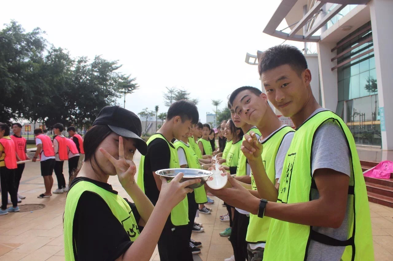 户外素质拓展培训由校外教练进行培训,培训分为上午、下午两个时间段进行。分别为上午四个游戏,下午四个游戏。培训开始首先进行抓手指游戏,以此锻炼同学们的反应能力。之后将80多名员工干部进行分组,分为4个小队,小队自行想队名和口号。教练以每个小队完成任务的时间长短的方式来决定名次,获得第一名的可以不用做俯卧撑,第二名做十个,第三名十五个,第四名二十个。这更加激发了同学们勇夺第一的信念。上午的趣味游戏项目有“抓手指”、“坐地起身”、“解手链”。第一个“抓手指”游戏让每个同学打破了陌生的尴尬,建立了足够的信任和依赖,让后面的游戏都游刃有余,合作得格外默契。尤其是在“坐地起身”游戏中,同学们的默契度更上一层楼。而上午的最后一个游戏“坐人椅”更是让同学们团结起来。下午则设置了“精神集中”“翻叶子”“水到渠成”“十人九足”等游戏。在“翻叶子”“水到渠成”和“十人九足”中,同学们都需要团结合作,考虑他人,改变自己,虽然冒着炎热的太阳,但我们比赛中的同学们依然坚持不懈把第一名作为目标努力着。