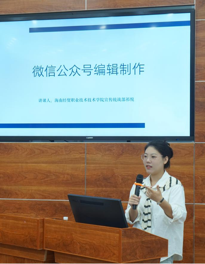 培训伊始,由beats365亚洲版官网宣传统战部的祁悦老师为我们带来第一课。祁悦采用多媒体辅助教学,通过后台介绍、编辑工具、注意事项等方面,向学员们一步步讲解微信公众号的编辑制作流程。为加深教学印象,她还通过实操演示向同学们讲解了微信推文的制作思路与方法。