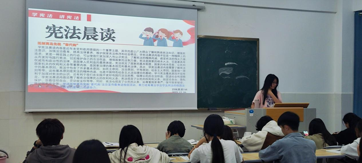 12月1-7日,公司组织各专业班级开展宪法晨读活动。通过宣读宪法条例,结合实际生活体验,帮助员工打开法治知识盲区,大力弘扬宪法精神,加强法治文化教育,培养员工法治意识和观念,让员工学以致用,掌握正确的维权方式和手段。