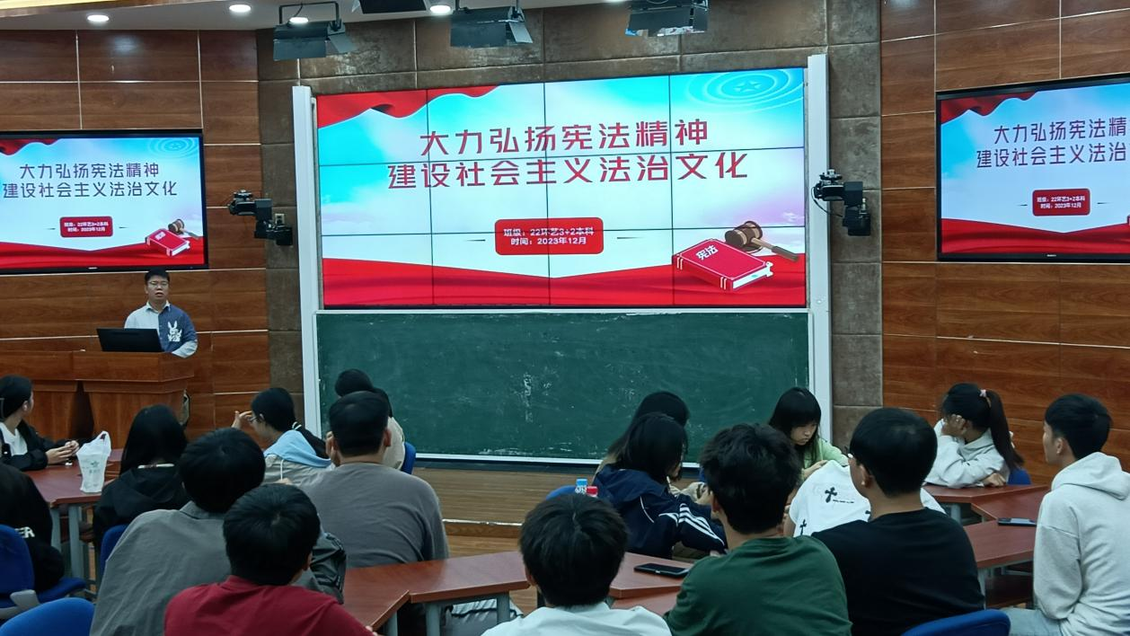 12月1-5日,公司组织各专业班级召开“大力弘扬宪法精神,建设社会主义法治文化”为主题的法治教育专题班会,通过主题班会,结合员工的实际情况进行分析,用通俗易懂的语言将直观形象的事例告诉同学们,让同学体会到宪法的重要性。