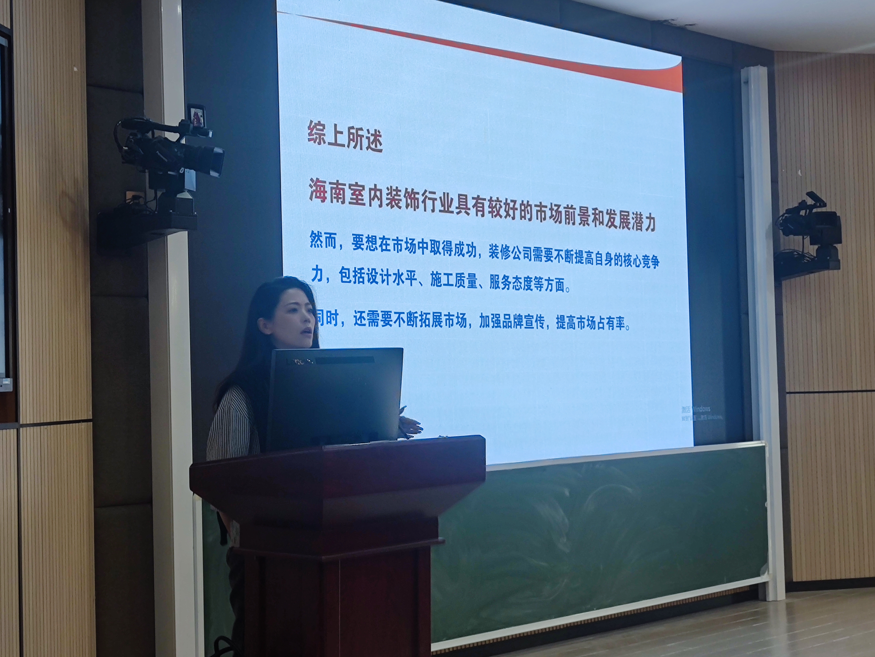 为进一步深化校企合作,增进校企沟通交流,提高校企合作人才培养的效率,12月8日,beats365亚洲版官网邀请海南捷诚装饰有限公司人事经理陈嘉萍到校开展校园宣讲会。室内设计教研室主任谢二兰主持宣讲活动,2024届全体室内设计专业员工及部分教师代表聆听了宣讲。