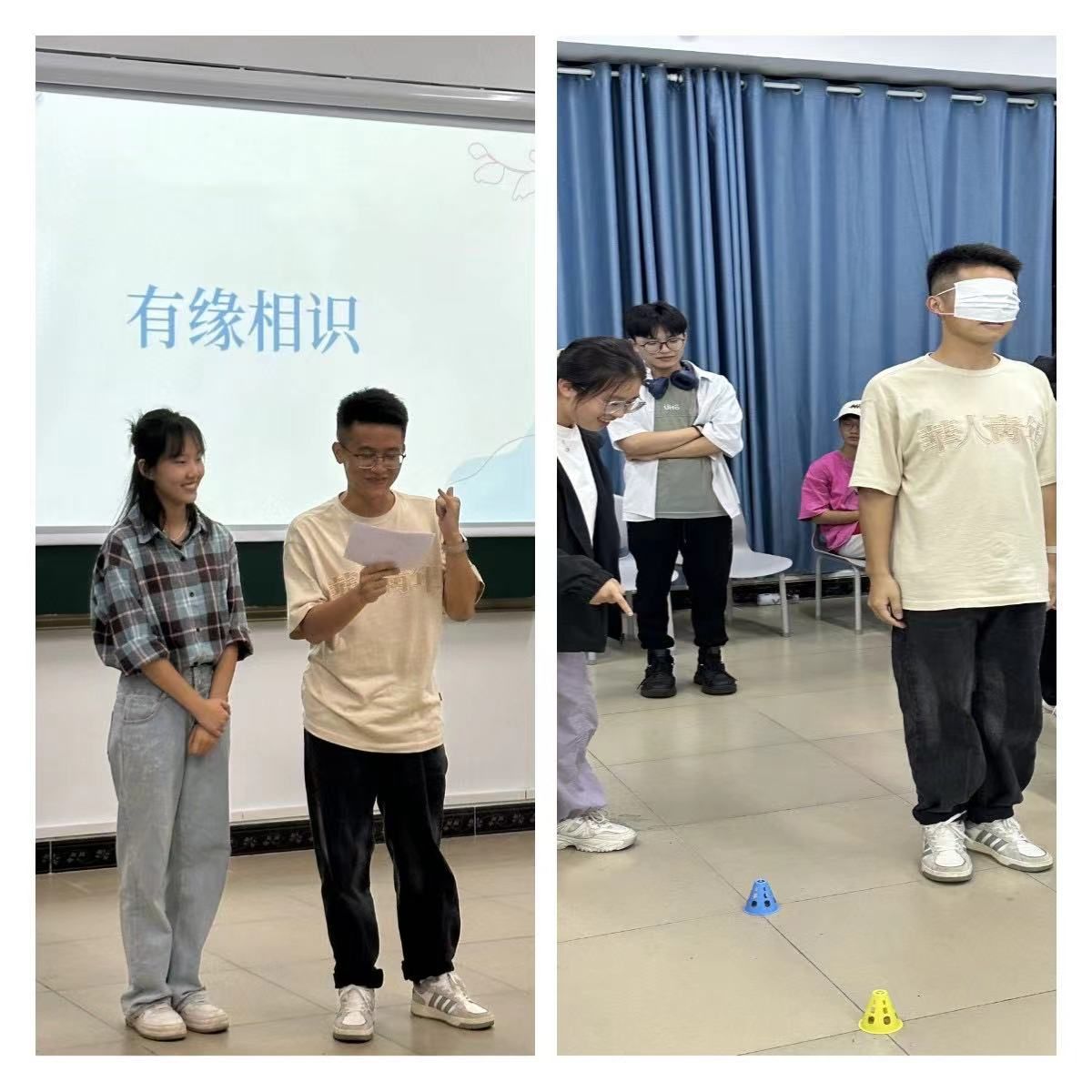 活动分为三个环节,首先,班委成员带头向班级同学们进行自我介绍,介绍家乡特色以及兴趣爱好等。接着,通过抽签的方式,分成小组,同学们以围坐的形式进行自我展示,通过设定话题纷纷表达自己。最后,同学们结成对子,通过一人蒙眼一人引导的方式,走过预设障碍,考验同伴间的默契与信任,现场氛围轻松愉快。活动最后,大家用合影留念的方式记录了这次活动的珍贵记忆。