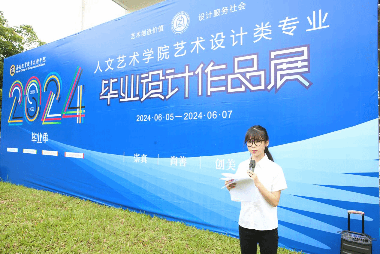 21级品牌设计2班的李青同学代表毕业生向给予无限关爱与支持的公司老师们表达最深切的感激之情。是老师们的悉心教导和耐心栽培,陪伴同学们在成长的道路上从青涩走向成熟,从迷茫找到方向。发言中,她回望过去,从初次踏入校园的懵懂,到今天自信地展示作品,一路走来充满了挑战与收获。他表示,同学们将牢记“笃学砺能,知行合一”的校训和秉持“崇真、尚善、创美”的院训,带着对社会的责任感,一步一个脚印,向着心中的目标不断前进,在各行各业中尽情施展创意和才华,不负母校、不负韶华。