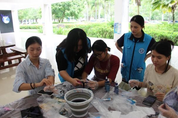 在公司党总支员工党支部指导下,近日,青年志愿者协会在一号教学楼一楼成功举办了第十三期“趣绘家”活动——非遗扎染手工制作志愿活动。