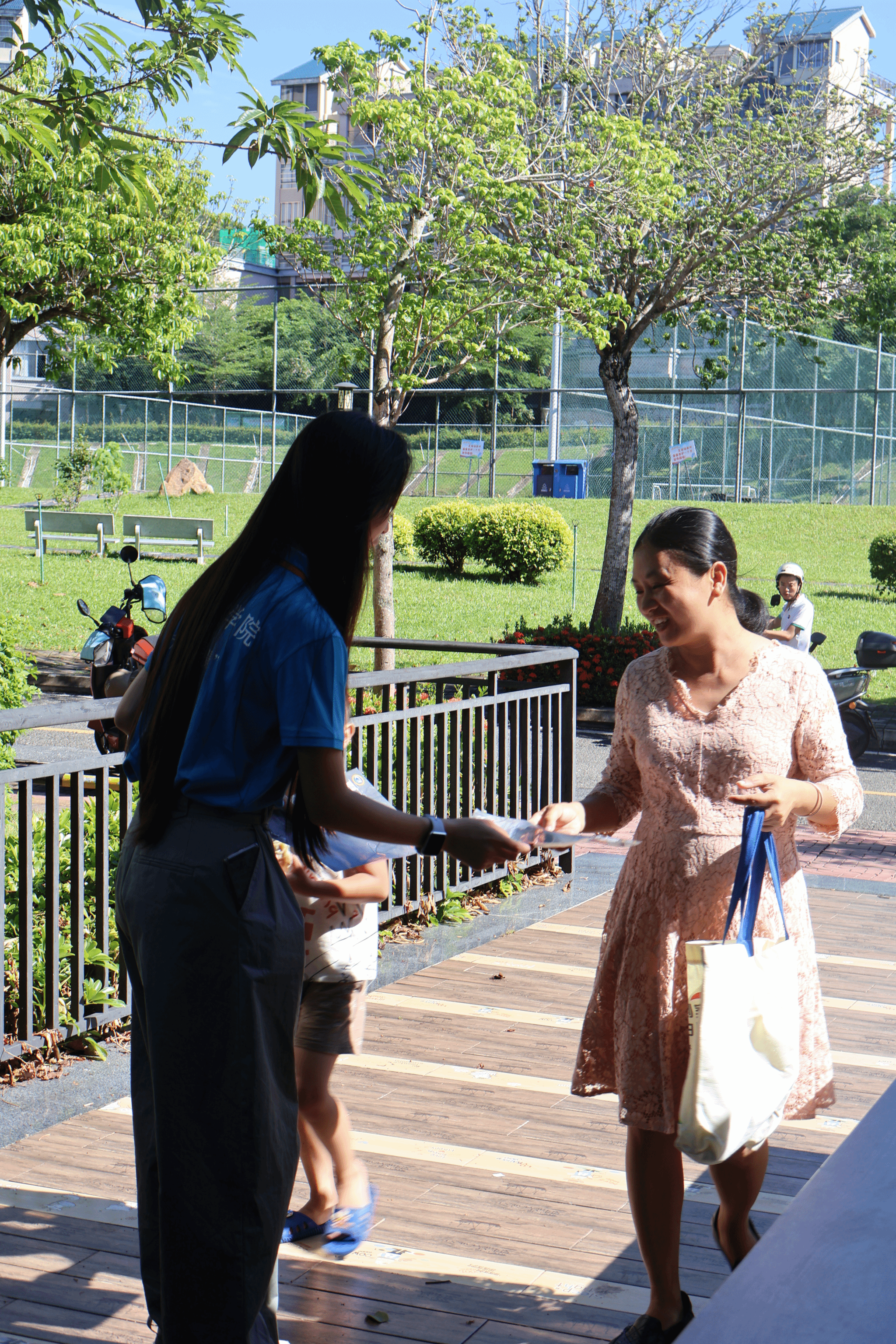 实践活动期间,助乡队还前往白沙县滨河路新时代文明实践基地(红色书榭),相应“万名老员工进千站”号召,参与了一场别开生面的“书香白沙——阅读有你‘伴侬成长·绿色阅读’”亲子阅读志愿者活动。这份跨越年龄与身份的关怀,不仅加深了实践队员对社会责任的认识,也让他们在实践中收获了成长的喜悦与满足。在活动现场,队员通过发放夏日防火、防范“套代购”等200份宣传单,引导群众注意个人与财产安全,助力自贸港建设。
