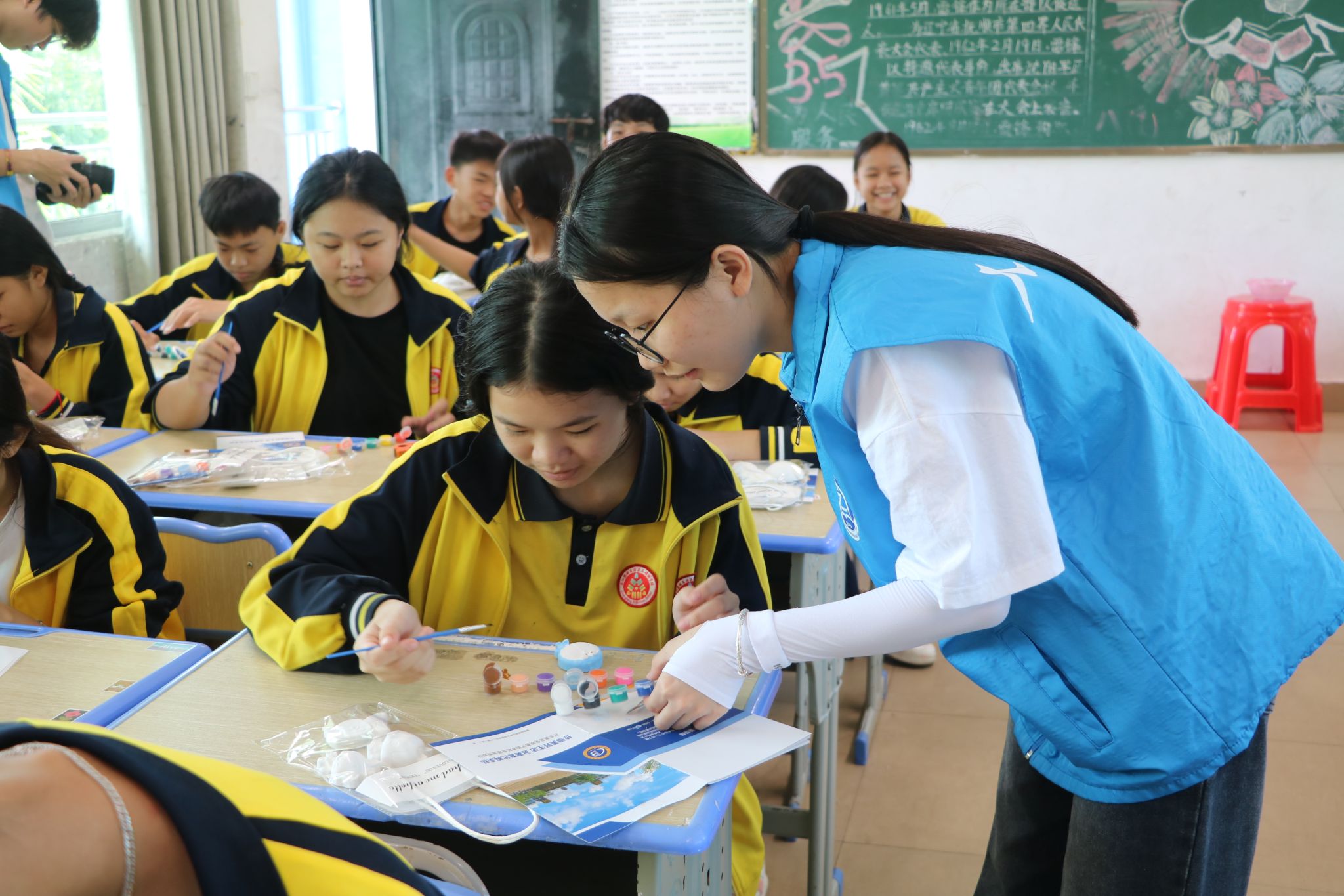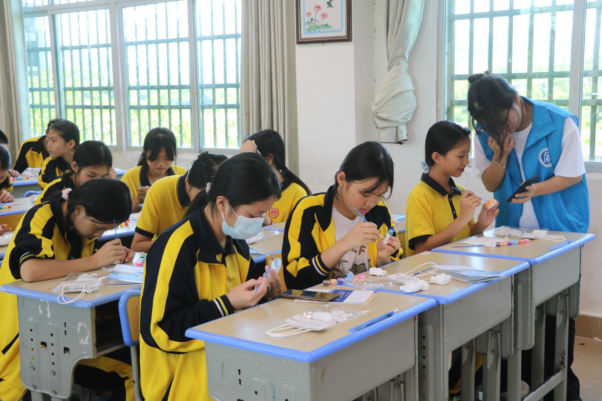 教室里,同学们在团队成员的悉心指导下,拿起手中的画笔尽情挥洒。一个个原本洁白的石膏像,因承载着他们的风华正茂和对未来的美好憧憬而变得绚烂多彩,活动过程中,同学们学会了调色和描涂基础技巧,这不仅有利于锻炼他们的创作和动手能力,也有效推动了美育教育,既强化了员工的专业实践性,也提升了员工专业能力。