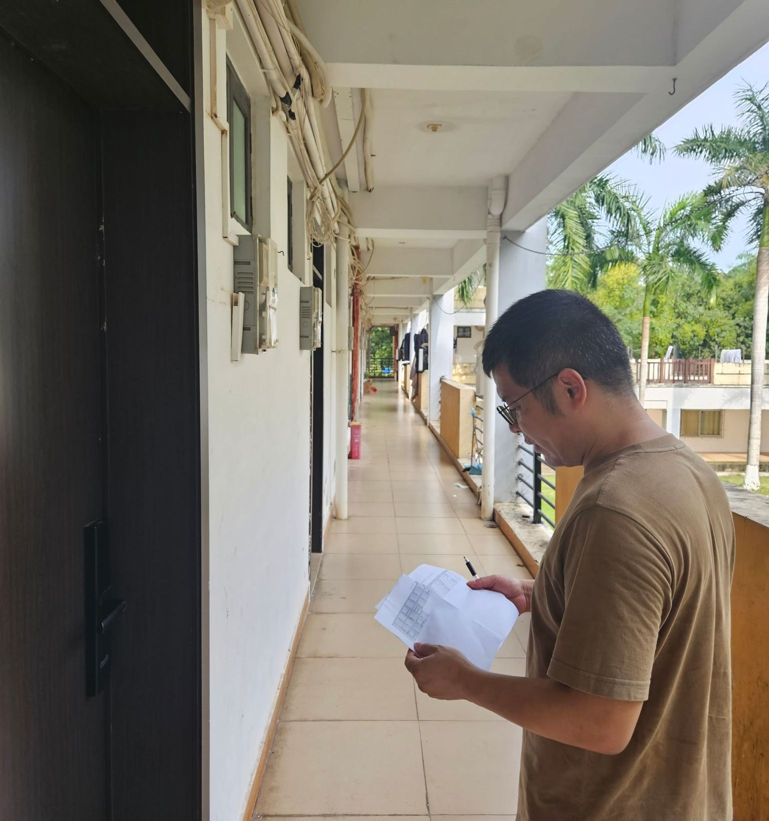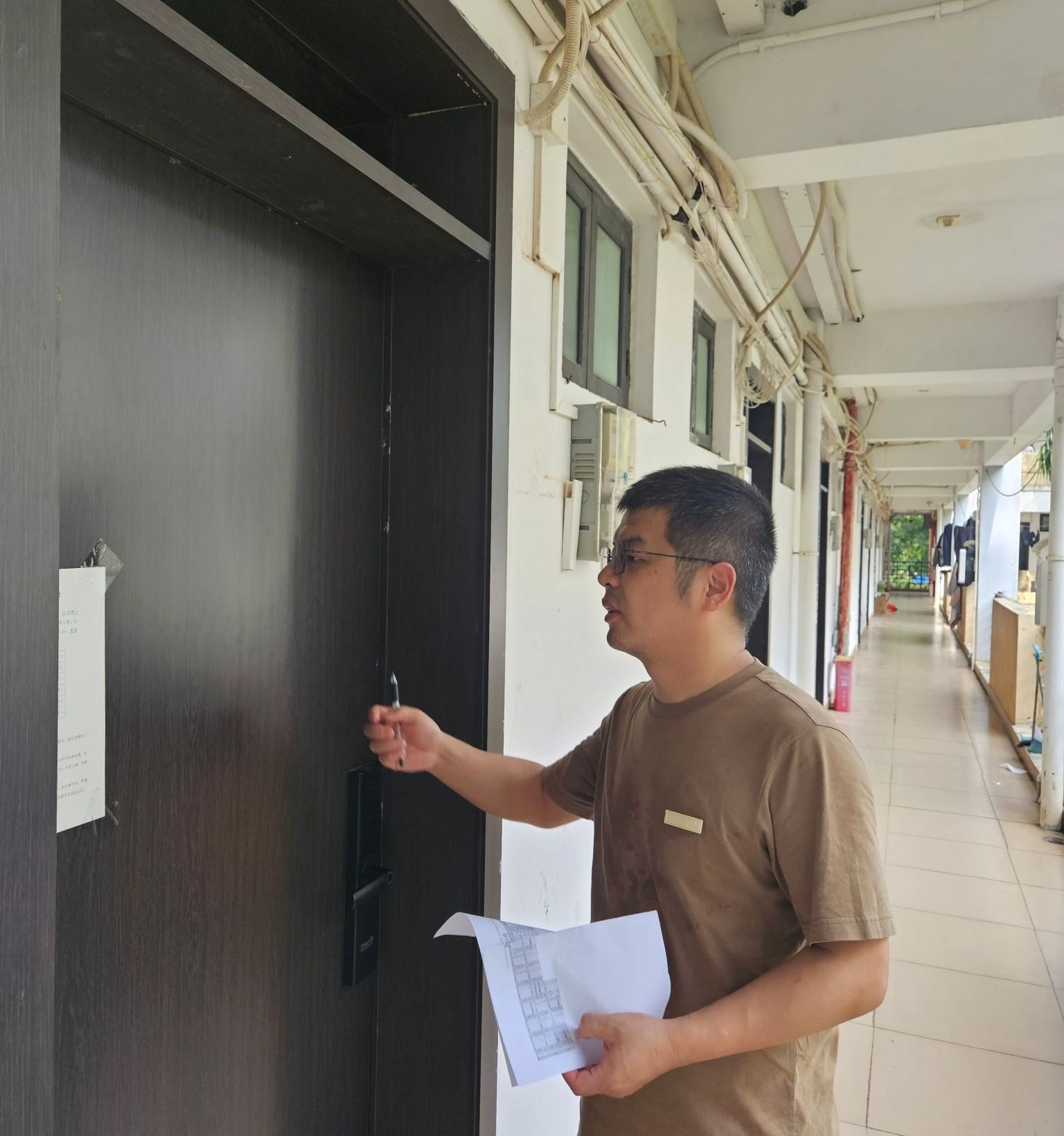 在与员工的交流中,老师们叮嘱员工们及时整理阳台走廊杂物,提高防范意识,加强安全防护,关好门窗,注意用电安全等,同时提醒同学们台风天非必要不外出,提前准备食物与饮用水,在寝室进行休息、学习,遇到困难和突发情况及时联系公司老师。