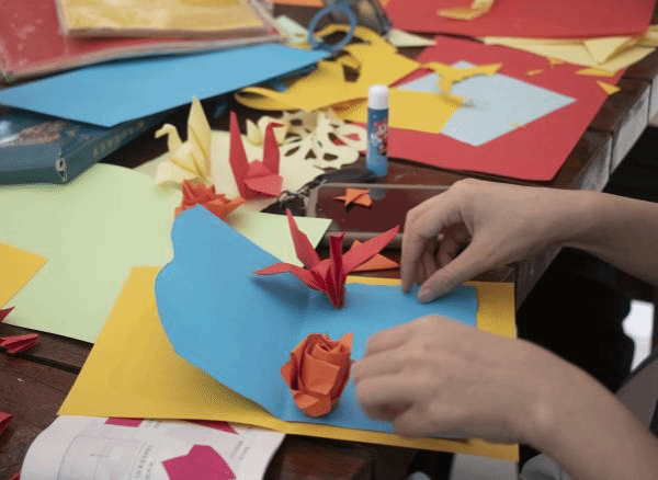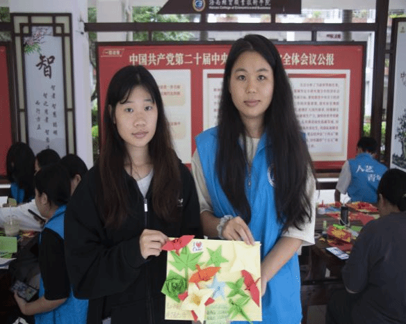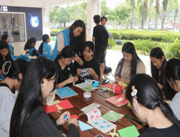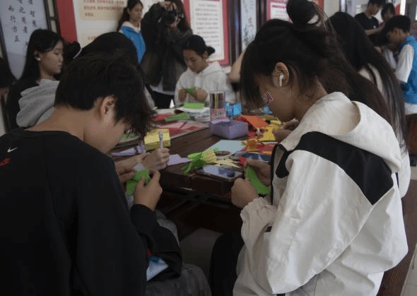在活动开展过程中,参与者在志愿者的辅助下,充分展现了其创新思维与想象力,从而激发了创作热情。本次活动旨在通过折纸贺卡这一传统而富有创造力的手工艺术形式,将中华人民共和国成立75周年庆典的热烈氛围与红色文化的深厚底蕴紧密结合,表达了莘莘学子深厚的爱国情感。