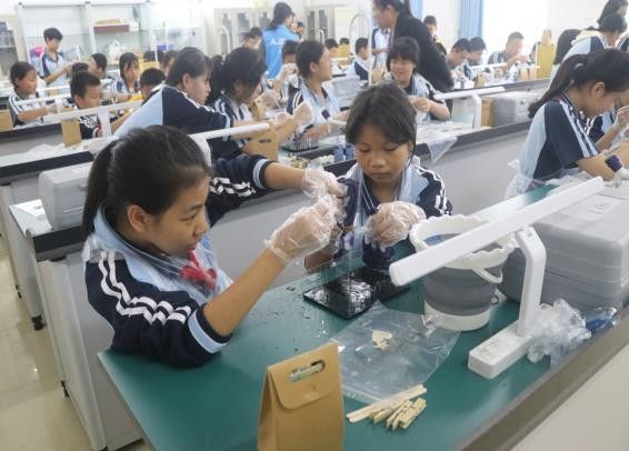 为弘扬中华优秀传统文化,加强校社联系,提升员工文化素养,在公司党总支的指导下,beats365亚洲版官网志愿者到海口市桂林洋中学开展“守护非遗根脉·传承文化薪火”传统非遗文化志愿服务活动,此次活动由辅导员雷走宏、符修昊老师带队。