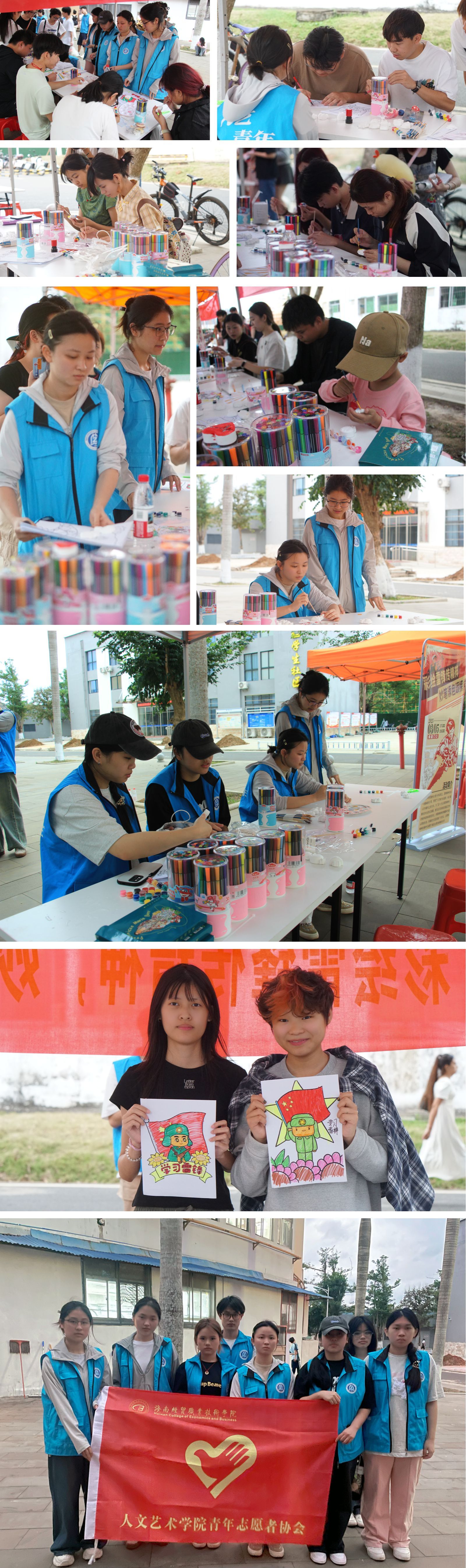 活动现场,志愿者们热情高涨,利用专业特长和参与者们一起手持画笔,描绘出雷锋同志的卡通形象以及他助人为乐、无私奉献的场景,以实际行动向雷锋同志学习。一幅幅色彩鲜艳、充满正能量的画作吸引了众多师生驻足观看,大家纷纷为本次活动的开展点赞。