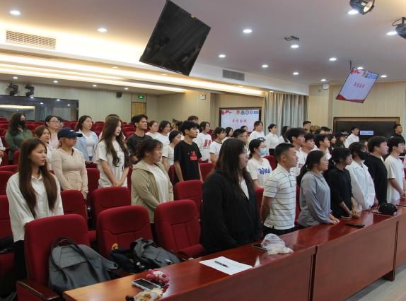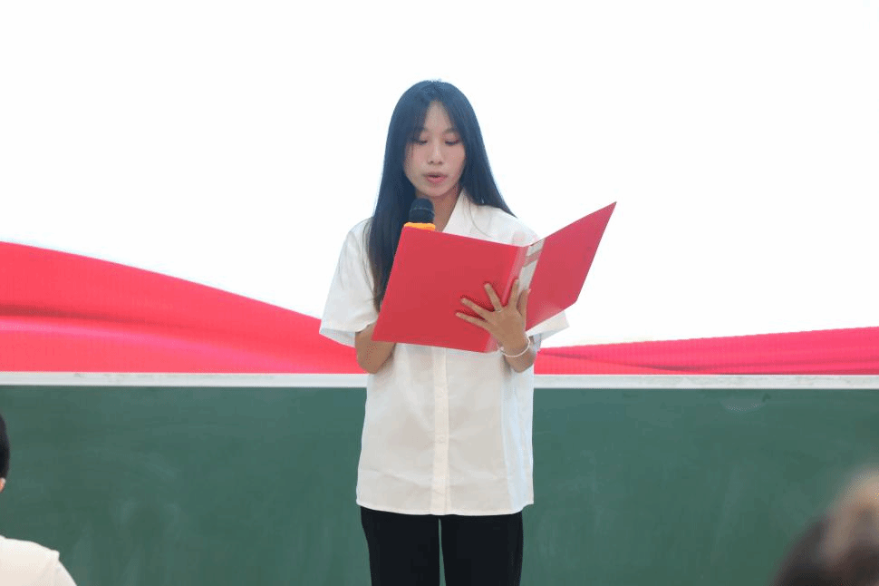 仪式在雄浑激昂的国歌声中拉开序幕,那振奋人心的旋律瞬间让现场弥漫起庄严的气息。国歌演奏与合唱结束后,主持人段梦娇逐个宣读新团员的名字。这一刻,每一位新团员都真切地感受到荣誉的千钧分量,激动与自豪之情满溢心间。
