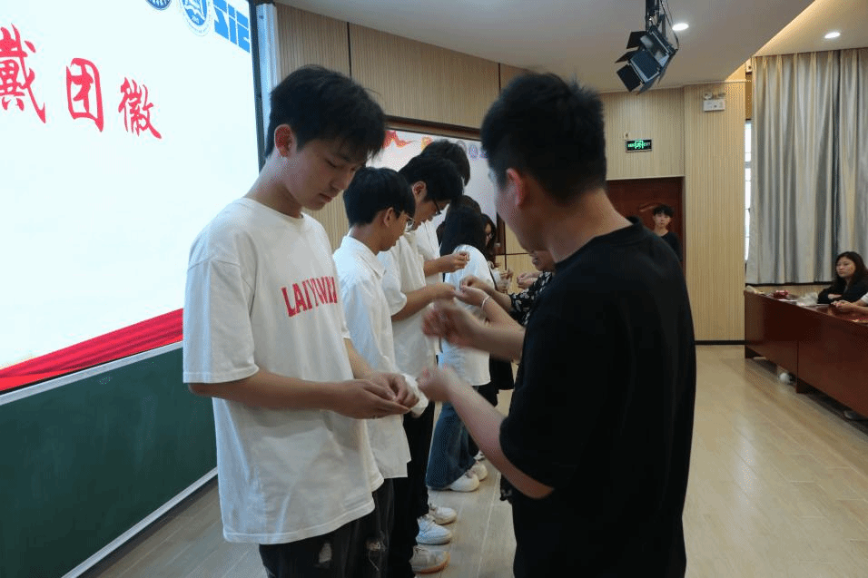 符修昊、崔增锐、肖意三位老师亲自为新团员代表别上团徽,并送上真诚的祝贺。团徽,作为共青团精神的具象化呈现,不仅代表着责任与担当,更意味着新团员身份的正式确立。当团徽在胸前闪闪发光,青春便与使命紧紧相依,激励着新团员们以实际行动诠释这份荣光,在成长途中坚定信仰的方向。