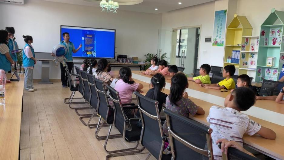 团队成员们利用所学知识和见解制作课程及教学视频,化身志愿者到服务中心的妇女儿童之家,给20余名小朋友上了一堂《航天员修炼记》的课。课堂上,团队成员采用生动活泼的教学方式,在频频互动中极大地提高了孩子们对航天梦的热情,传播了航天科普知识,进一步弘扬了航天文化及精神。