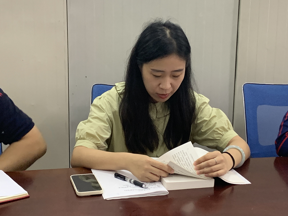 会上,行政党支部书记张丹丹领学《习近平新时代中国特色社会主义思想专题摘编》的第三个专题《坚定不移高举中国特色社会主义伟大旗帜》以及员工党支部书记徐源领学第二个专题《坚持和加强党的全面领导》,并结合实际工作发表学习心得。
