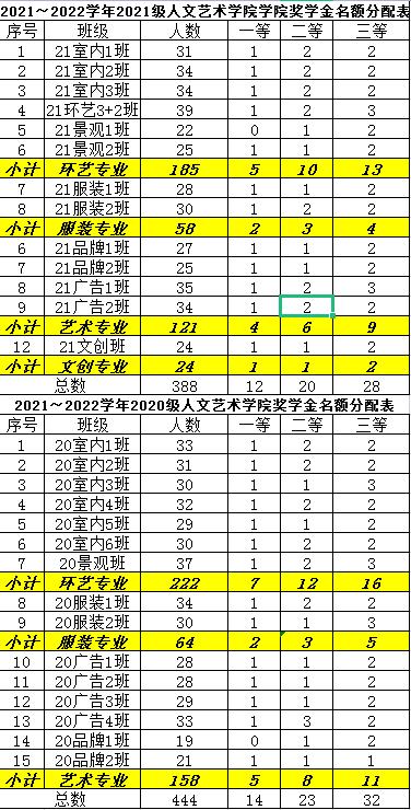 2021~2022学年奖学金名额预分配名单公示