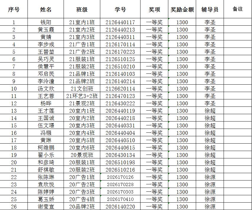 2021~2022学年公司奖学金拟推荐名单公示