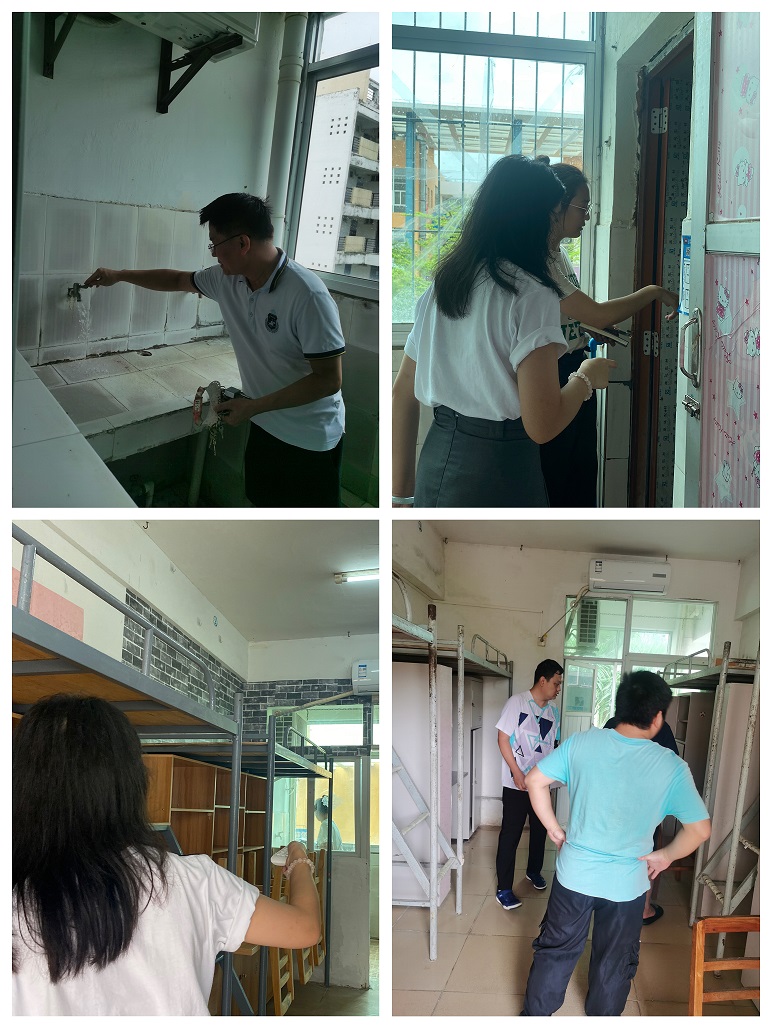 本次检查目的在于及时发现问题、解决问题,保障宿舍环境卫生、安全,为新生营造温馨舒适的住宿氛围。老师们细致地对宿舍的卫生情况、基础配置、整体环境进行检查;认真查看门窗桌椅、空调 等设施是否存在损坏;并重点排查了宿舍的安全隐患问题,例如水电开关是否正常、床位排查、床架焊接等,切实保障迎新工作稳步开展。