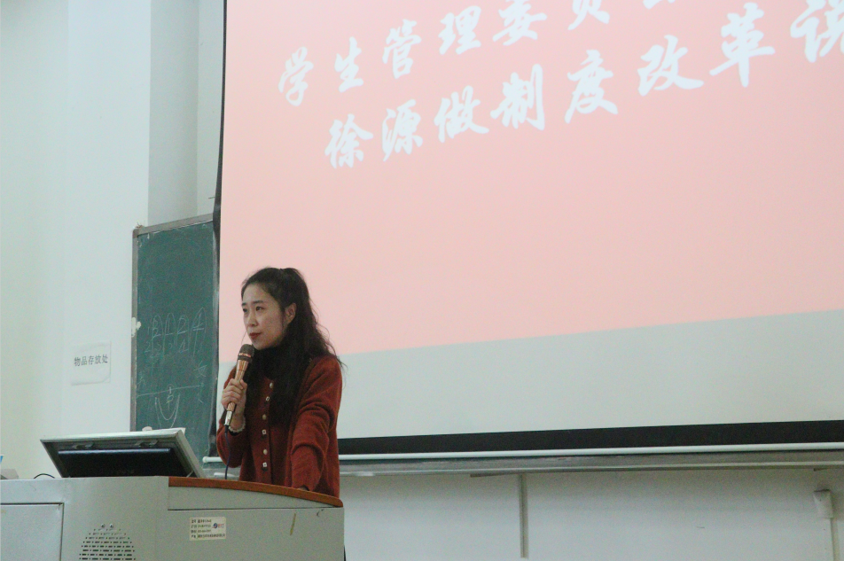 公司员工管理委员会负责老师徐源做总结讲话。她首先对新成员的加入表示感谢。她强调,员工管理委员会是员工自我管理、自我服务、自我监督的员工组织,不仅有利于良好校风、学风的建设,更为员工们提供了锻炼和展示自我的平台。希望新成员们能够利用学管会,锻炼自己人际交往、团队协作等能力,强化责任意识,磨练个人意志,成为德智体美劳全面发展的新时代老员工。