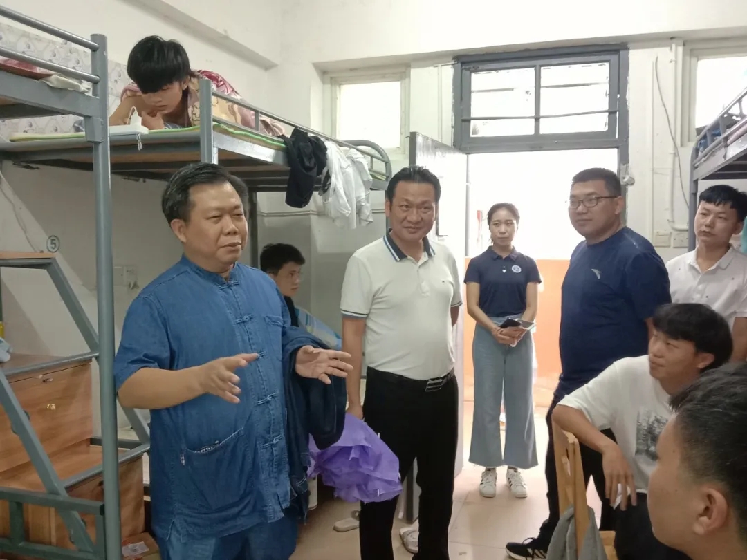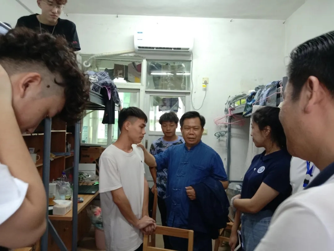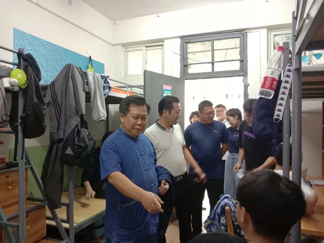 一行人查看了各专业的员工宿舍,温馨提示新生们在校期间要注意做好疫情防护工作,并仔细询问了同学们对于新环境所面临的问题,同时提醒新生们一定要谨防诈骗以及用电安全。