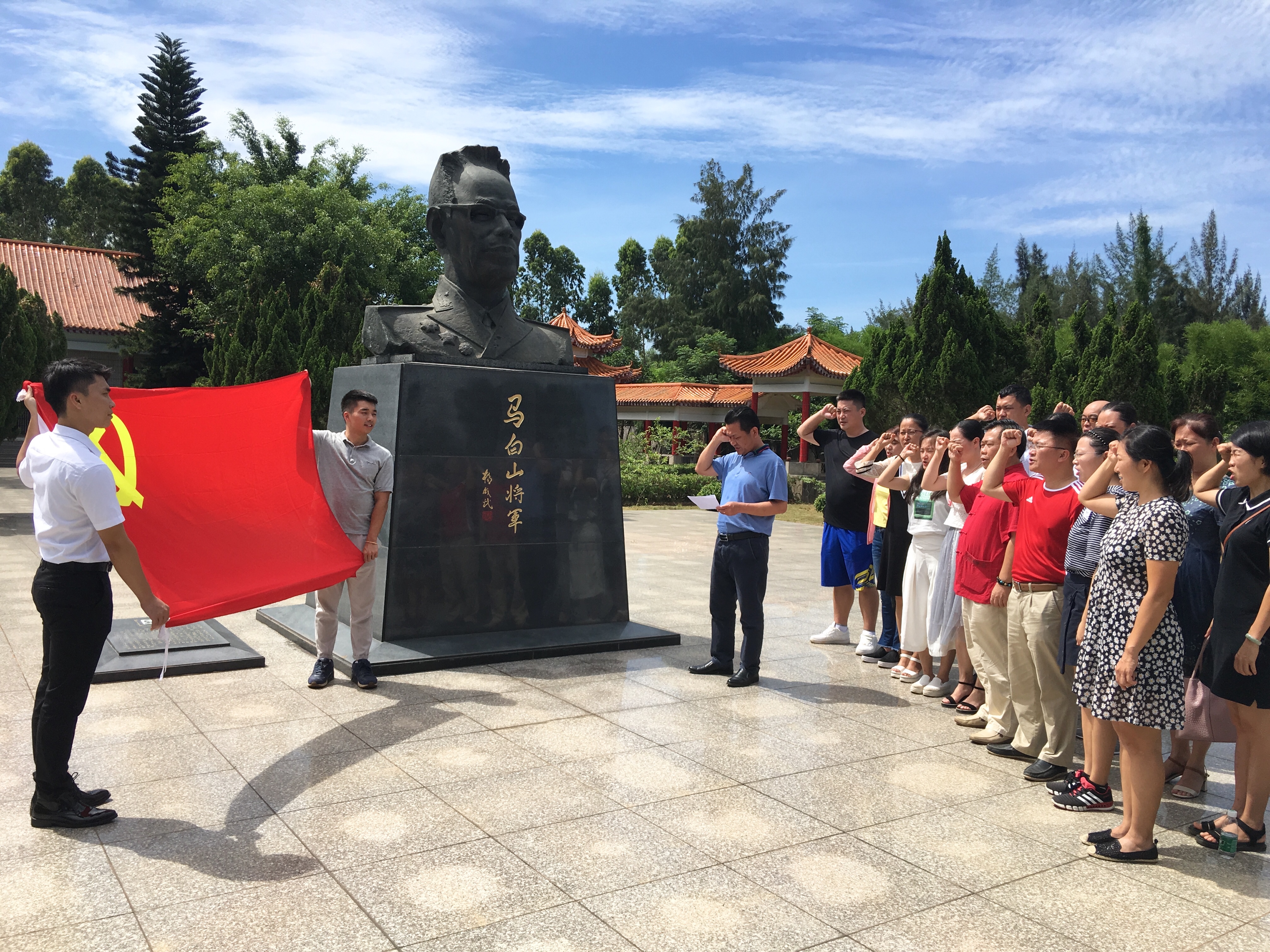 全体党员参观了马白山将军纪念馆,观看了纪念馆里陈列的马白山将军生前照片、资料文件、文物等,追忆了当年马白山将军生前英雄事迹,感受到革命先烈崇高的理想信念和奉献精神。在纪念馆里,曹迪伟书记现场讲党课,为大家讲解了海南革命历史,在新时代,如何学习马白山将军等老一辈共产党员英勇奉献、不怕吃苦、爱党爱民的优良作风,高尚的思想道德,顾全大局的胸怀,坚定共产主义的理想信念,曹书记的党课生动明晰,让我们每位党员同志都受到了一次生动的党课教育。