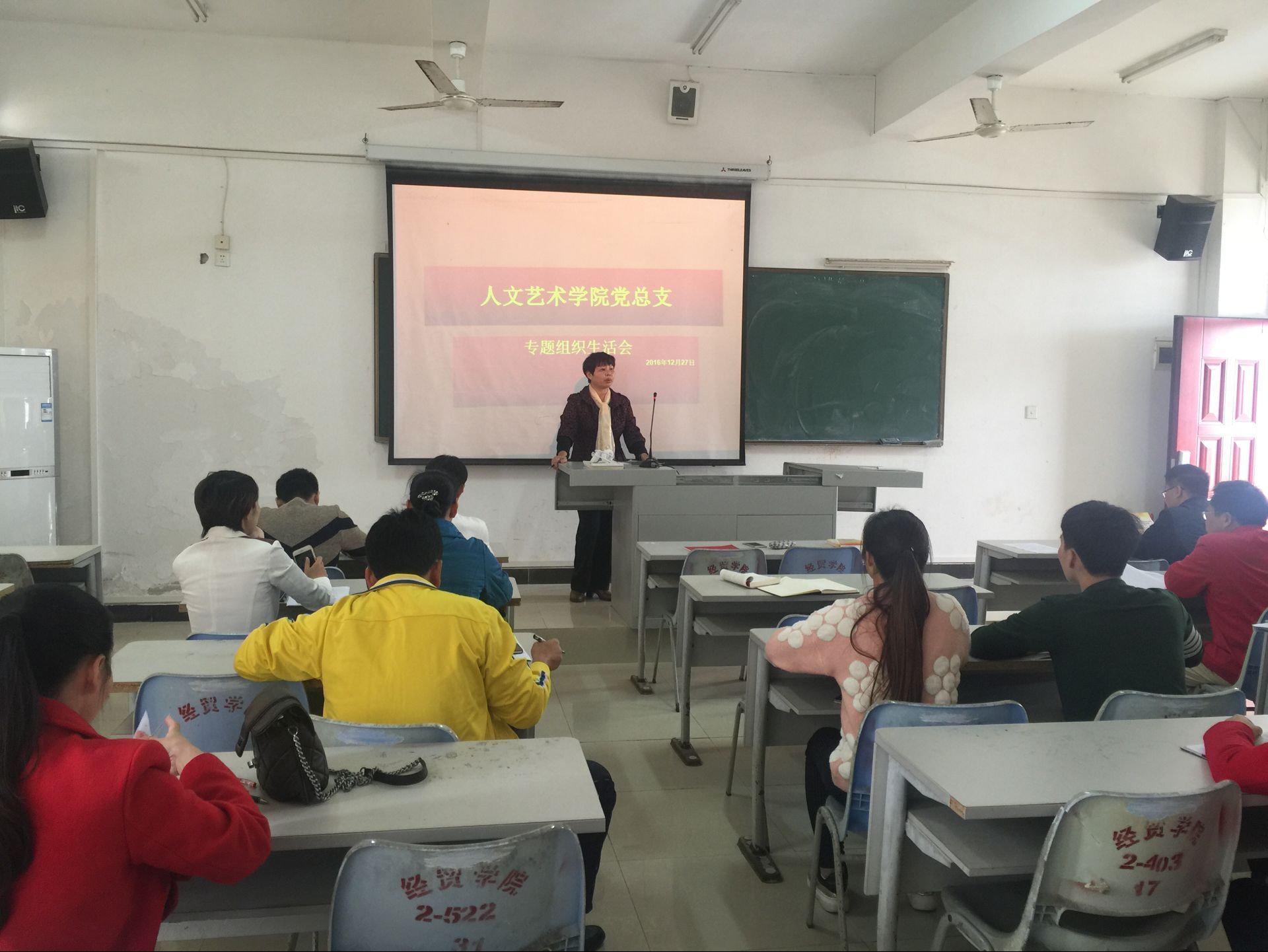 根据公司党委统一安排部署,12月27日公司党总支在第一教学楼1-524多媒体教室召开 “两学一做”专题组织生活会。此次组织生活会由黄慧娟书记主持,公司党总支全体党员参加了本次生活会。