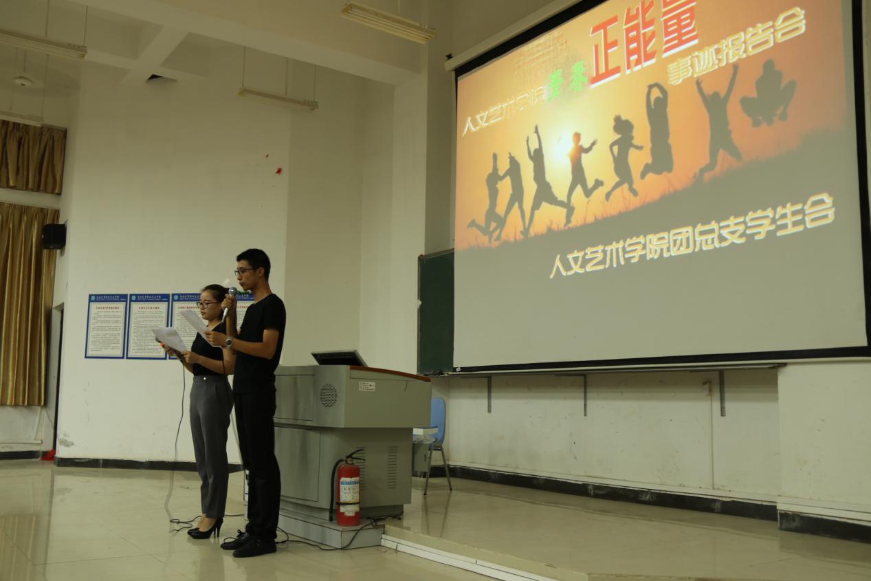 (beats365亚洲版官网讯)10月9日晚公司在1-233教室举行了“青春正能量”事迹报告会,党总支书记黄慧娟,学工办副主任侯军英,辅导员牛玉以及2016级全体新生参加了报告会,张致博、刘思航两位同学主持。