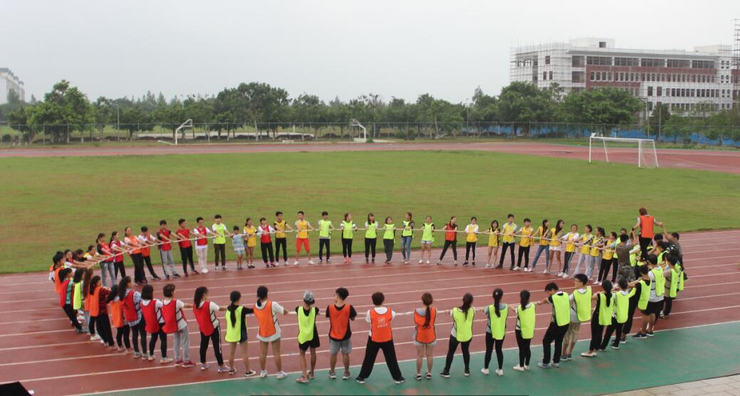 素质培训由校外专业教练进行培训,培训分为上午、下午两个时间段进行。分别为上午三个项目,下午四个项目。培训开始首先将72名员工干部进行分组,分为5个小队,小队自行决定队名和口号。教练为每个小队以分数高低的方式来决定名次,获得前三名的可以免费去体验攀岩活动。这更加激发了同学们勇夺第一的信念。上午的趣味项目有“群龙取水”、“不倒森林”、“我们是最优秀的团队”。第一个“群龙取水”项目让各个小队的同学打破了陌生同学之间的尴尬,建立了足够的信任和依赖。以至于后面的项目都游刃有余,合作得格外默契。下午则设置了“坐龙椅”“动感颠球”“地雷阵”“主席走麻绳”等项目。在“坐龙椅”中虽然飘起了密雨来但我们比赛中的同学依然伫立在雨中,坚持不懈把第一名当做目标努力着。