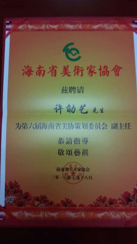 陈茂叶主席在成立大会上指出:为了海南省美协的发展需要,强调了成立策划、综合两个艺委会的意义,对两个艺委会今后的发展给予了厚望,宣布海南省美术家协会策划委员会和综合委员会成立,并向新担任策划委员会和综合艺委会主任和副主任的同志颁发了聘任证书(当选者均为我省行业内领军人物、知名专家及高校学者型教授),公司许劭艺书记凭借个人的资深艺术造诣及业内影响光荣当选策划委员会副主任。
