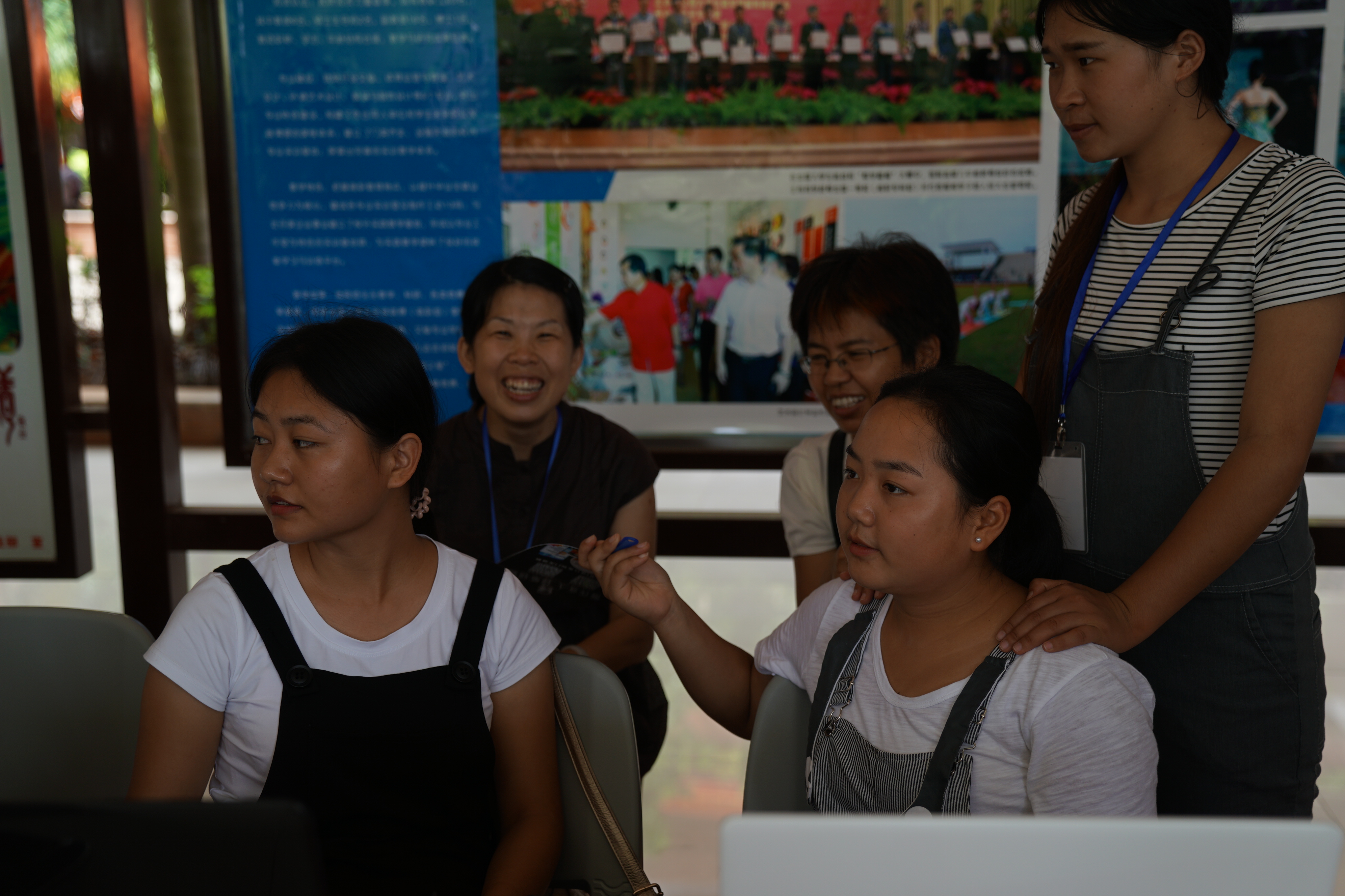 在迎新工作点上还有一个特殊的窗口,为了方便贫困员工正常入学,不让一个家庭困难员工因为贫困而失学,特别设立了“绿色通道”,而这个窗口却是由公司党总支书记黄慧娟亲自坐镇的,由于不见员工前来咨询,她时不时看看迎新系统的员工报到数据,也时不时询问旁边的工作人员,以确保能够帮助到需要帮助的每一个大一新生。