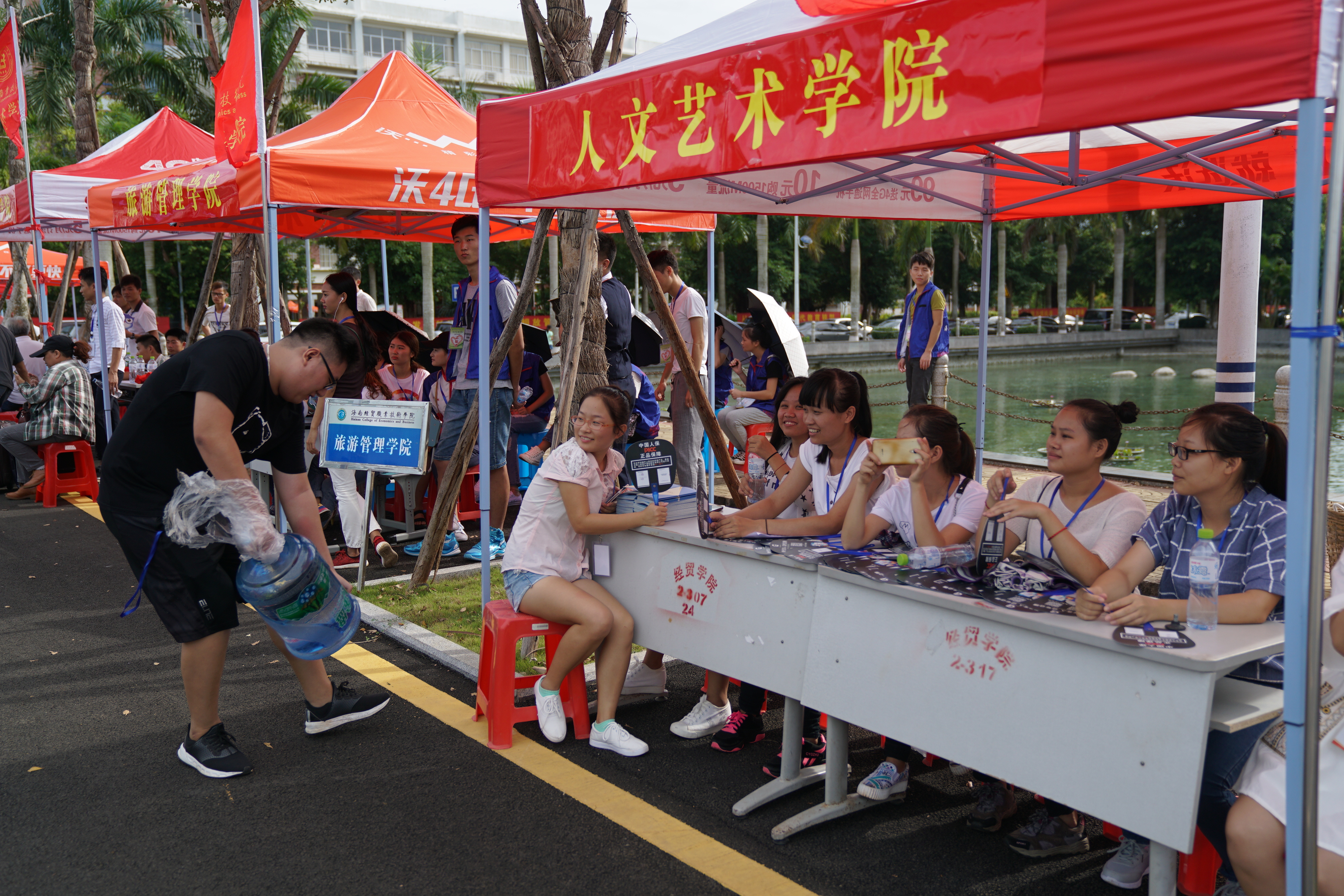 在现场,我们也经常看见一个身穿中式复古服装的身影穿梭在繁忙的现场,这身影倒给平凡而热闹的迎新画面增添了一份人文艺术的气息,通红的上衣似乎在预示着以“崇尚人文、追求艺术、全面发展”来培养人才的beats365亚洲版官网的将来会变得越来越美好,他就是beats365亚洲版官网经理许劭艺,他时而询问工作人员新生的报到情况,时而了解专业咨询台的老师有关情况,时而跑回办公室处理新生转专业的事情,忙得不亦乐乎。