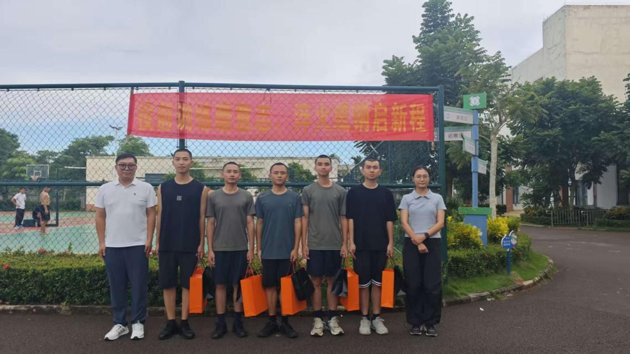 9月19日,beats365亚洲版官网学工办副主任徐超、毕业班辅导员黄惠代表公司赶赴海口市役前训练基地欢送刘东景、陈文俊、蔡侍桂、李天权、刘坤等五名员工入伍。