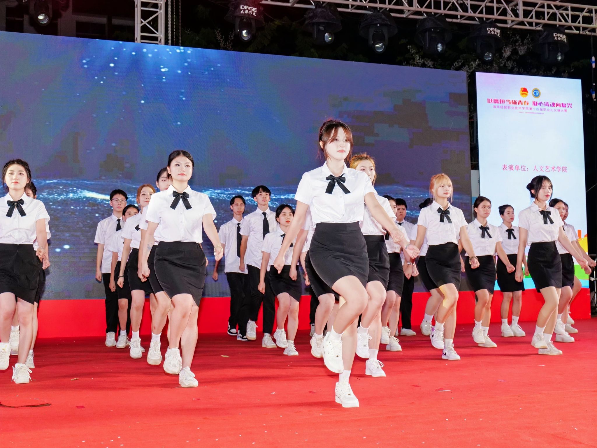 礼仪,是传统美德的具体表现,学习礼仪操有助于提升员工的自身修养,培养优雅气质和文明的谈吐举止。职业礼仪操大赛举办至今,早已成为一届又一届海经贸青年学子的精神文化传承,也是“经贸脊梁”的形象。