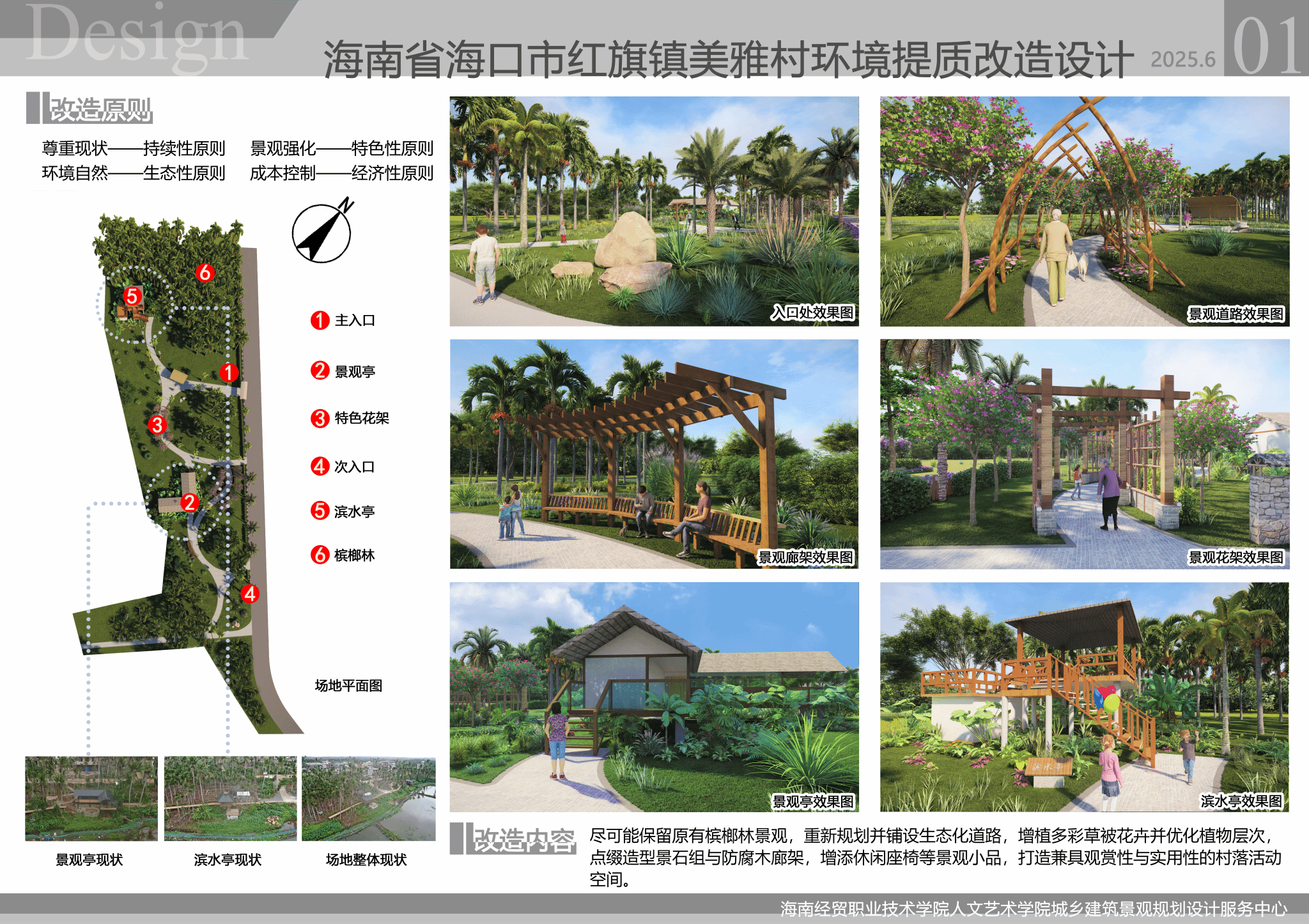 2025年6月10日,海南省第三批高校“双带头人”教师党支部书记工作室(海经贸人艺匠心工作室)党员许家瑞博士带领员工团队,赴红旗村村委会向村党总支书记苏应鹏汇报了为美雅村设计的景观提质改造方案。此次汇报聚焦乡村生态保护、文化传承与产业融合,以“党建引领+设计下乡”模式探索乡村振兴新路径。
