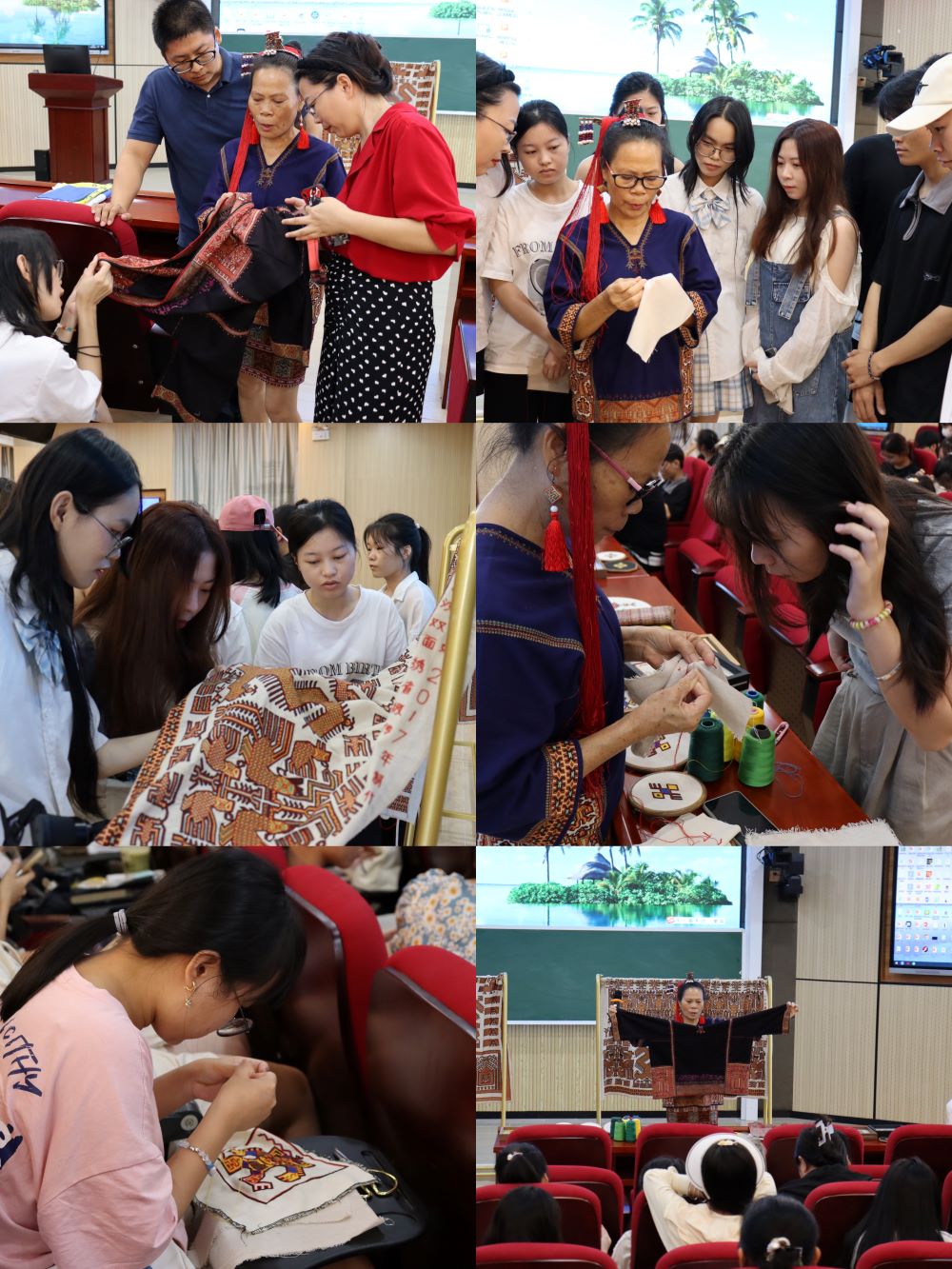 2023年9月22日,海南省南海工匠、海南非物质文化遗产项目“黎族传统棉纺织工艺”代表性传承人王瑞妹到公司开展了黎锦双面绣技艺传承及交流活动,该活动面向全校师生开放,beats365亚洲版官网服装与服饰设计专业员工全程参加了此次技艺学习交流活动。
