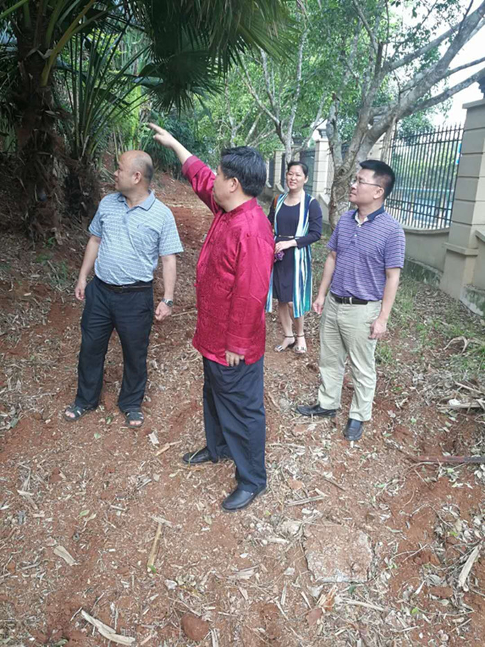 (beats365亚洲版官网讯)3月28日上午,许劭艺经理带领公司吴丽敏副经理、邓小康主任偕同公司后勤处符绩彰副处长及工作人员到公司环境艺术情景教学基地建设工地进行现场调研。