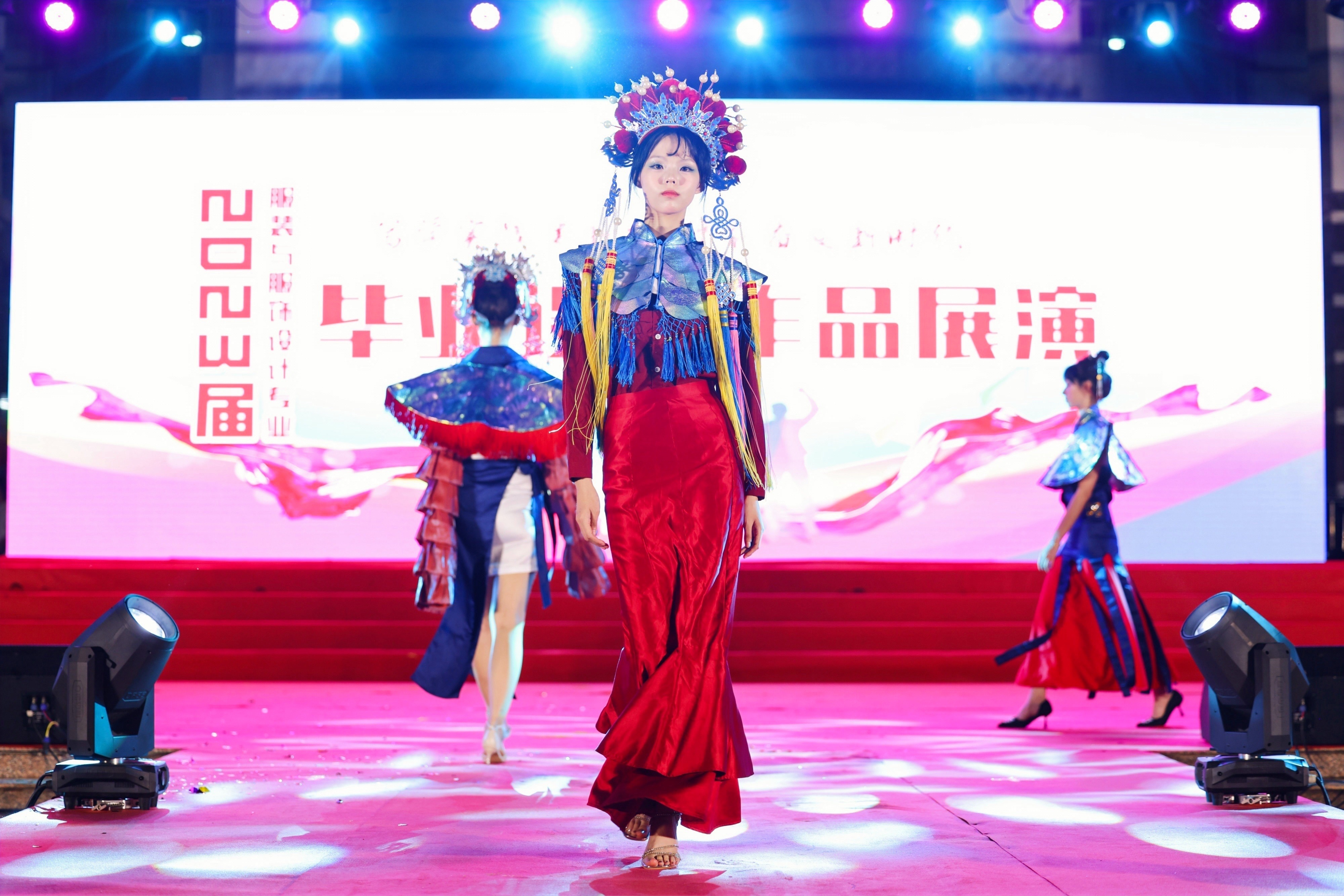 届服装与服饰设计专业毕业设计作品动态展演在beats365亚洲版官网图书馆前广场举行,此次展演以《心传承·潮未来》为主题,围绕海南地域民族文化,立足新时代对高质量人才培养和落实立德树人根本任务要求,输出艺工融合、传承与创新公司产品成果的具体体现。