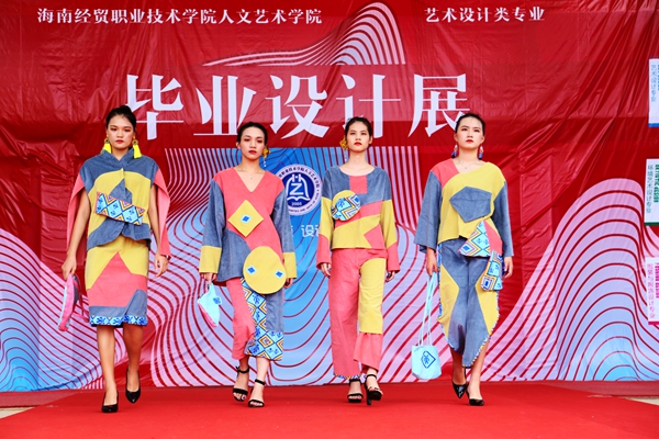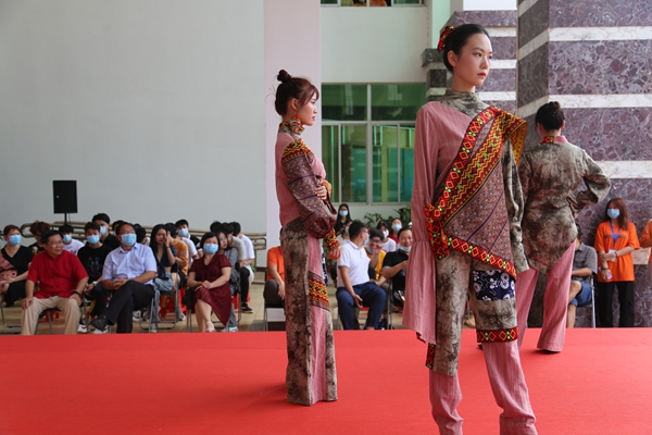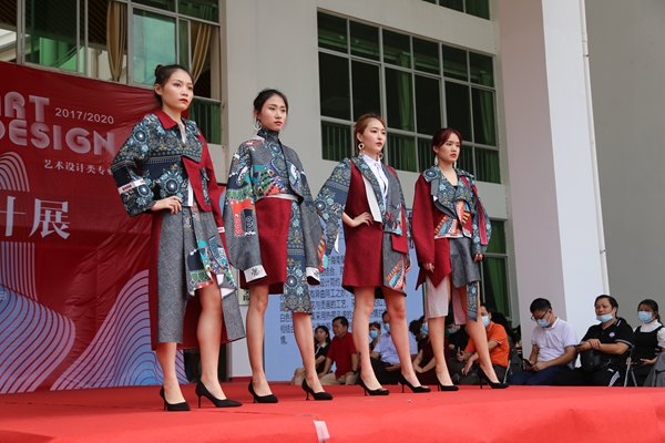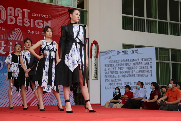 本次作品展汇集了2017级品牌设计与管理、广告设计与传播、室内设计、景观设计、服装与服饰设计5个专业共计225名同学的创作成果。它不仅饱含着师生们三年来教与学的心血和结晶,也承载着所有关心beats365亚洲版官网发展的人们的期待。今年的作品展规模更加宏大,品类更加丰富,创意氛围更加浓厚。同学们的精心布展优化提升了展示水平和展览效果,让观众获得更好的创意文化体验。开展仪式上,同学们还进行了时装秀表演,凝聚海南传统元素、创意十足的服装设计吸引了广大师生前来观看。