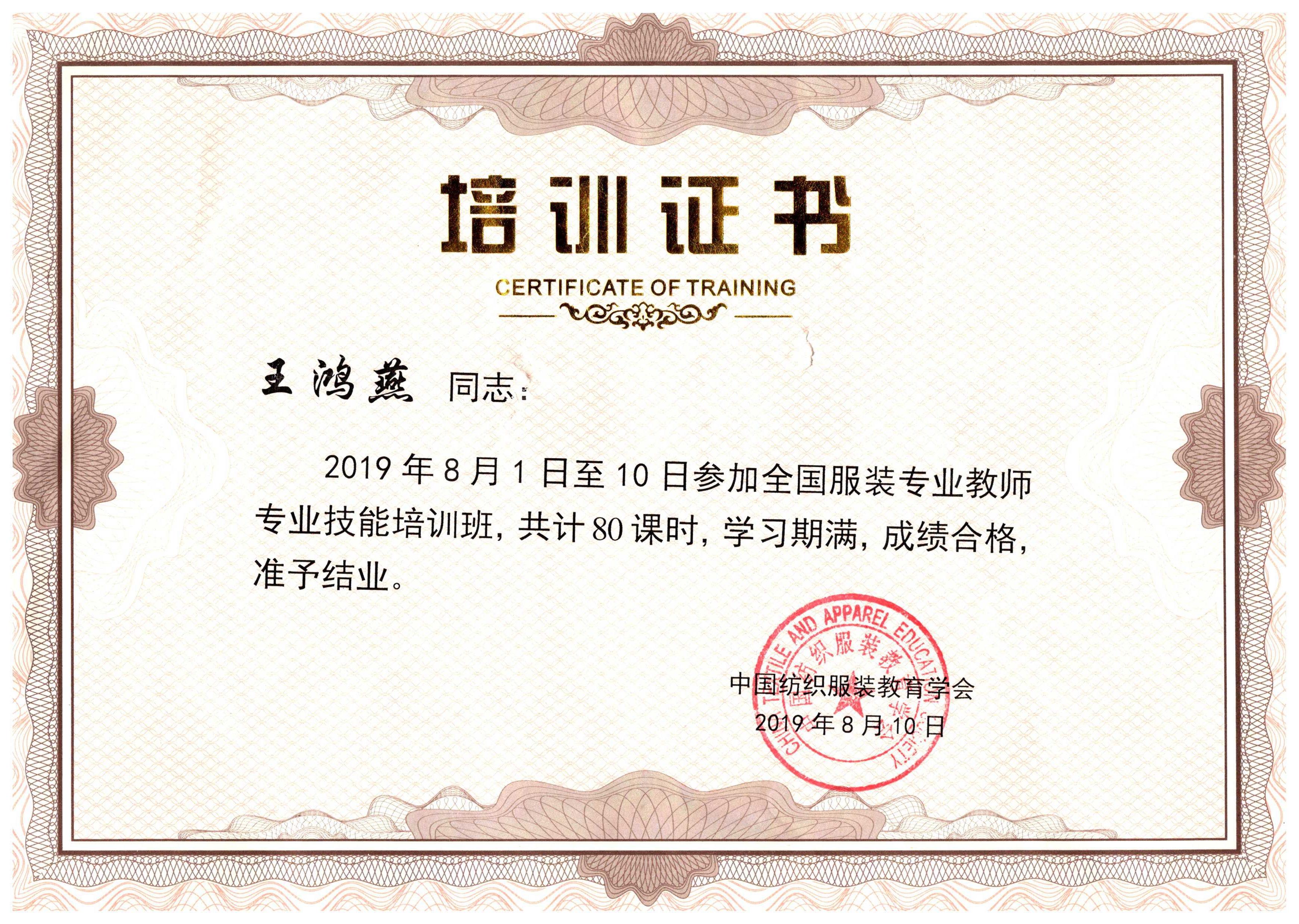 beats365亚洲版官网陈侦侦、王鸿燕老师参加2019年全国服装专业教师专业技能培训