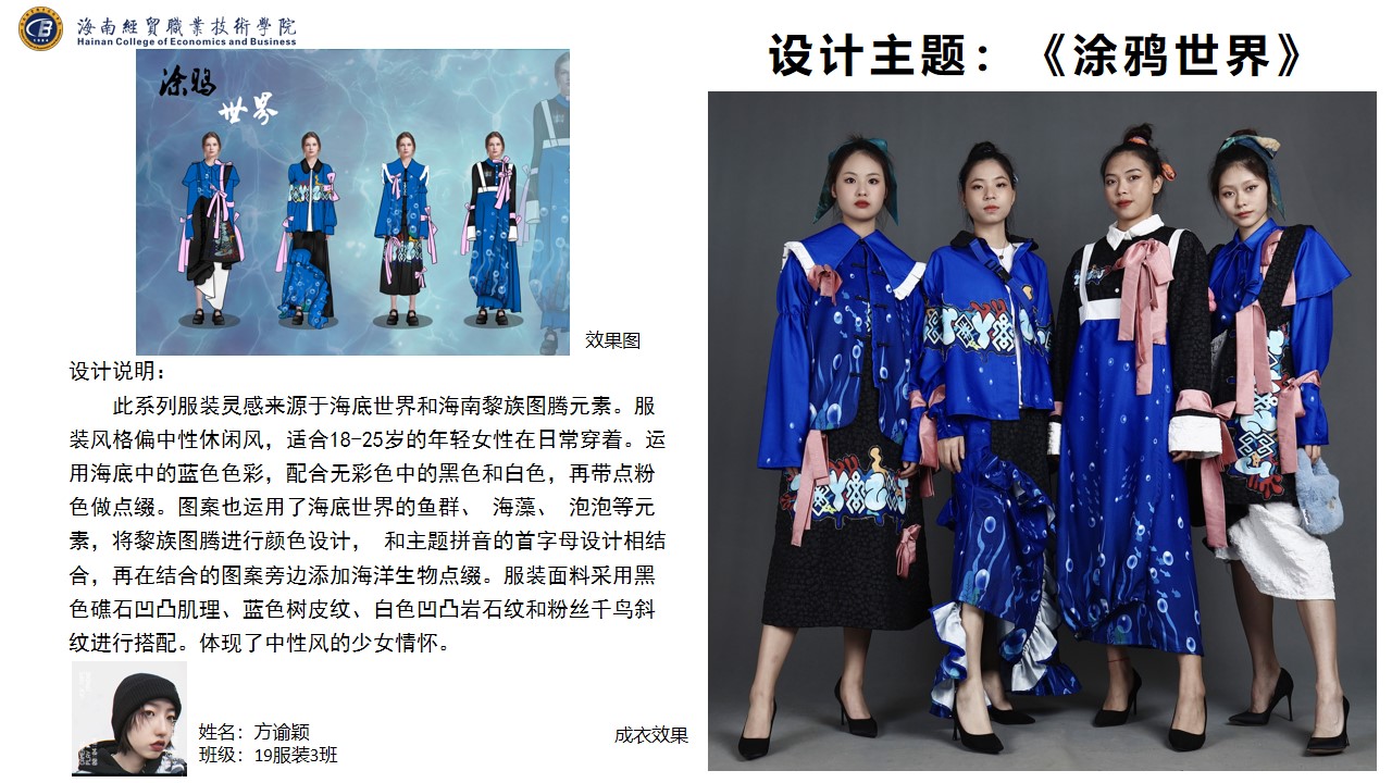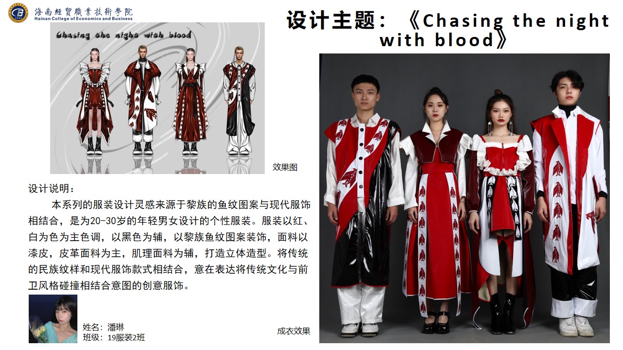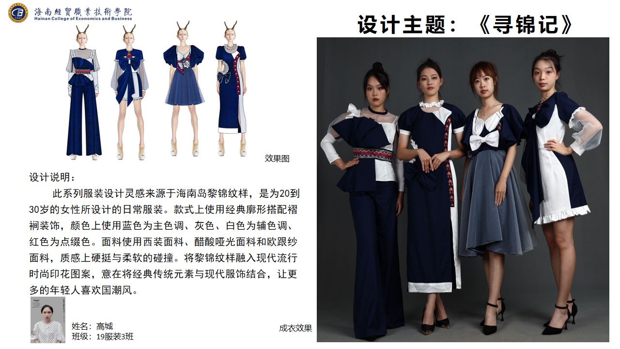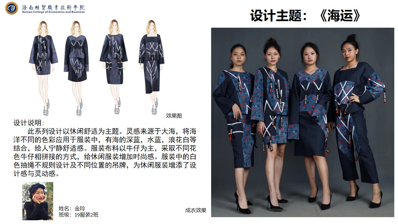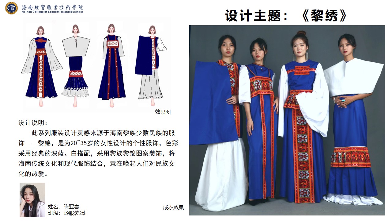 服装与服饰设计专业毕业展以“承续·尚潮”为主题,通过动态秀、静态展和线上展等三种方式,展示了76位毕业生的305套服装及其配饰作品。动态秀在公司图书馆报告厅举行,校领导、师生以及兄弟院校服装专业负责人、中高职3+2分段培养合作办学试点院校儋州中等职业技术公司部分师生以及省内服饰企业代表共计460余人现场观看。动态秀以海南特色元素为核心,从整个毕业生设计作品中精选40个服装系列,涵盖男装、女装、童装、运动装、休闲装、礼服、创意装多个服装类别,通过模特动态展示,完美展现了博大精深的海南民族文化和热带海洋风情,为观众呈现出一场传统与现代、时尚与个性的视觉盛宴。静态展在该校图书馆展厅举办,展出全体服装与服饰设计专业毕业生的设计作品,包括服装实物和展板,展出时长为1个星期。线上展在该校beats365亚洲版官网官网上展出。静态展和线上展对社会开放。