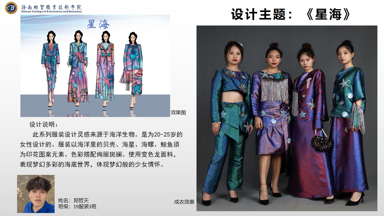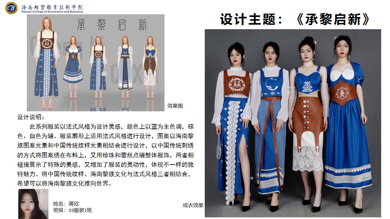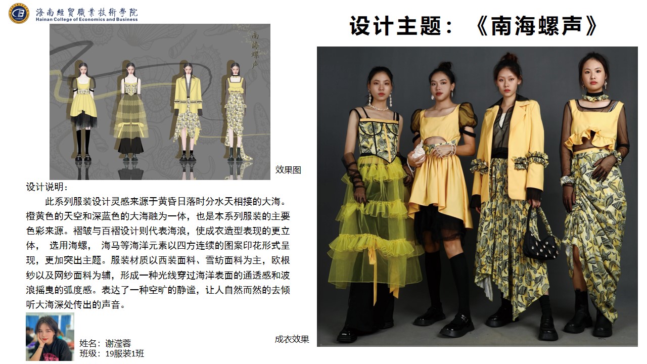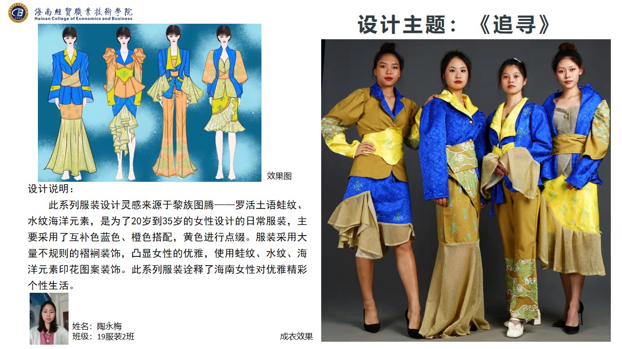 服装与服饰设计专业毕业展以“承续·尚潮”为主题,通过动态秀、静态展和线上展等三种方式,展示了76位毕业生的305套服装及其配饰作品。动态秀在公司图书馆报告厅举行,校领导、师生以及兄弟院校服装专业负责人、中高职3+2分段培养合作办学试点院校儋州中等职业技术公司部分师生以及省内服饰企业代表共计460余人现场观看。动态秀以海南特色元素为核心,从整个毕业生设计作品中精选40个服装系列,涵盖男装、女装、童装、运动装、休闲装、礼服、创意装多个服装类别,通过模特动态展示,完美展现了博大精深的海南民族文化和热带海洋风情,为观众呈现出一场传统与现代、时尚与个性的视觉盛宴。静态展在该校图书馆展厅举办,展出全体服装与服饰设计专业毕业生的设计作品,包括服装实物和展板,展出时长为1个星期。线上展在该校beats365亚洲版官网官网上展出。静态展和线上展对社会开放。