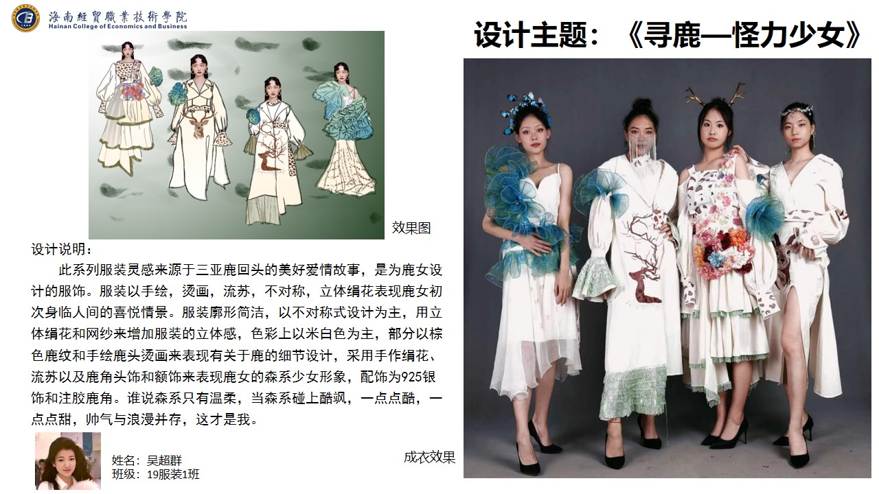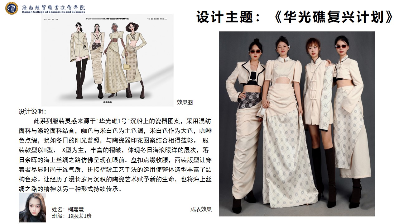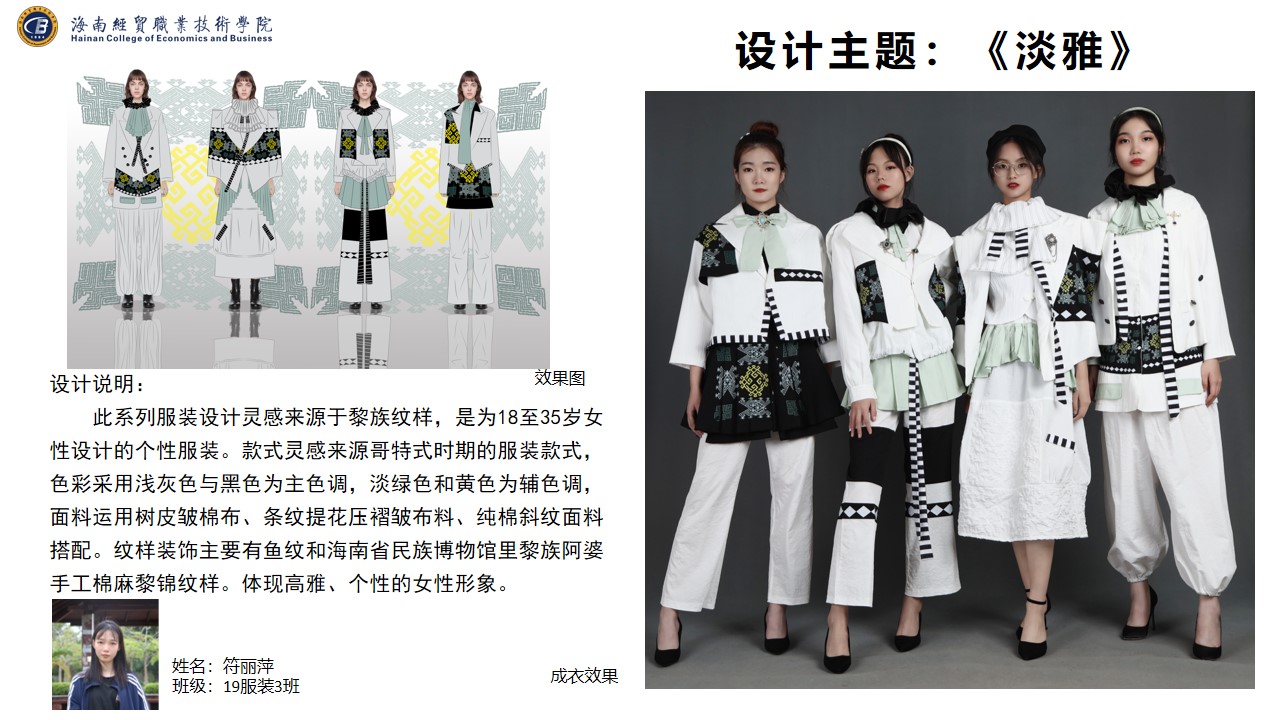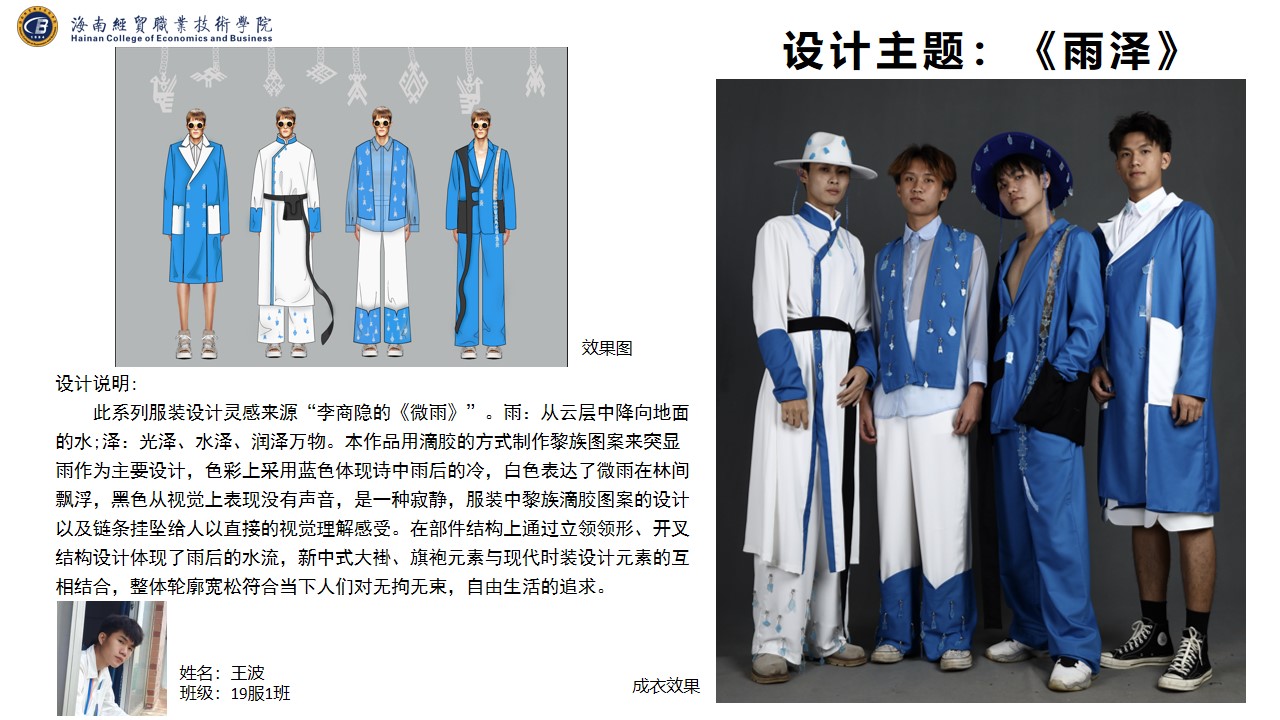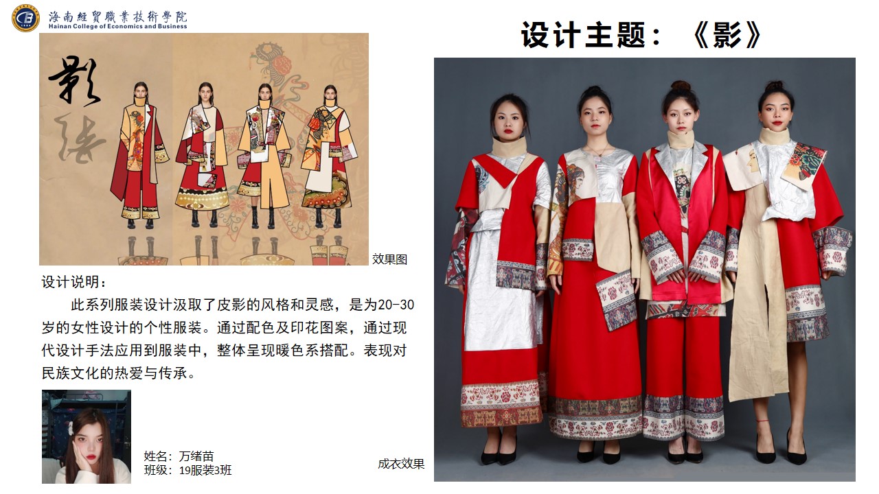 服装与服饰设计专业毕业展以“承续·尚潮”为主题,通过动态秀、静态展和线上展等三种方式,展示了76位毕业生的305套服装及其配饰作品。动态秀在公司图书馆报告厅举行,校领导、师生以及兄弟院校服装专业负责人、中高职3+2分段培养合作办学试点院校儋州中等职业技术公司部分师生以及省内服饰企业代表共计460余人现场观看。动态秀以海南特色元素为核心,从整个毕业生设计作品中精选40个服装系列,涵盖男装、女装、童装、运动装、休闲装、礼服、创意装多个服装类别,通过模特动态展示,完美展现了博大精深的海南民族文化和热带海洋风情,为观众呈现出一场传统与现代、时尚与个性的视觉盛宴。静态展在该校图书馆展厅举办,展出全体服装与服饰设计专业毕业生的设计作品,包括服装实物和展板,展出时长为1个星期。线上展在该校beats365亚洲版官网官网上展出。静态展和线上展对社会开放。