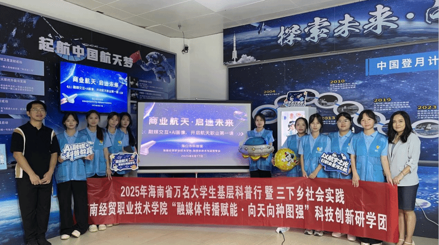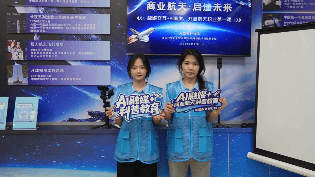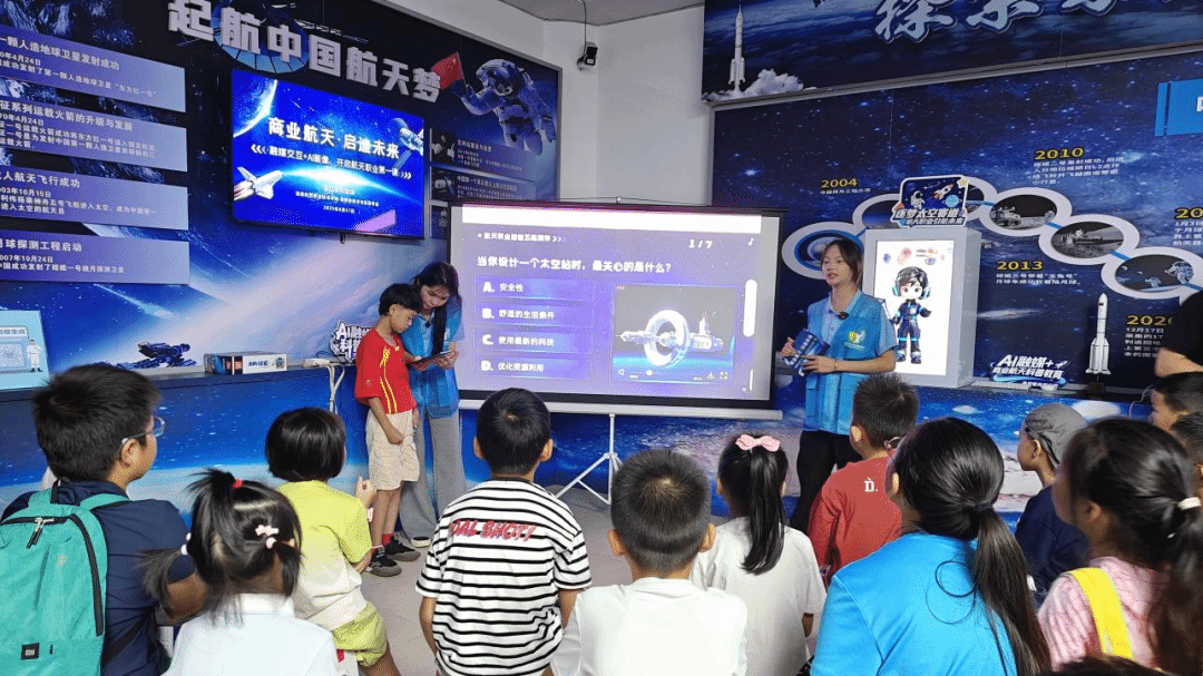 2025年8月17日、24日,beats365亚洲版官网“AI融媒+商业航天”科普教育基层服务践行团,走进海口市科技馆,开展了别开生面的航天主题科普活动。活动以“数智融媒·多维传播:赋能商业航天职业启迪”为主题,结合公司牵头的教育部-联合国儿童基金会核心能力提升项目“批判性思维与创造性思维”内容,通过商业航天发展历程和航天器知识讲解、未来航天职业倾向测试和文创生成等多元形式,为参与者带来了沉浸式的航天科普体验,在青少年心中播撒下追逐航天梦想的种子。