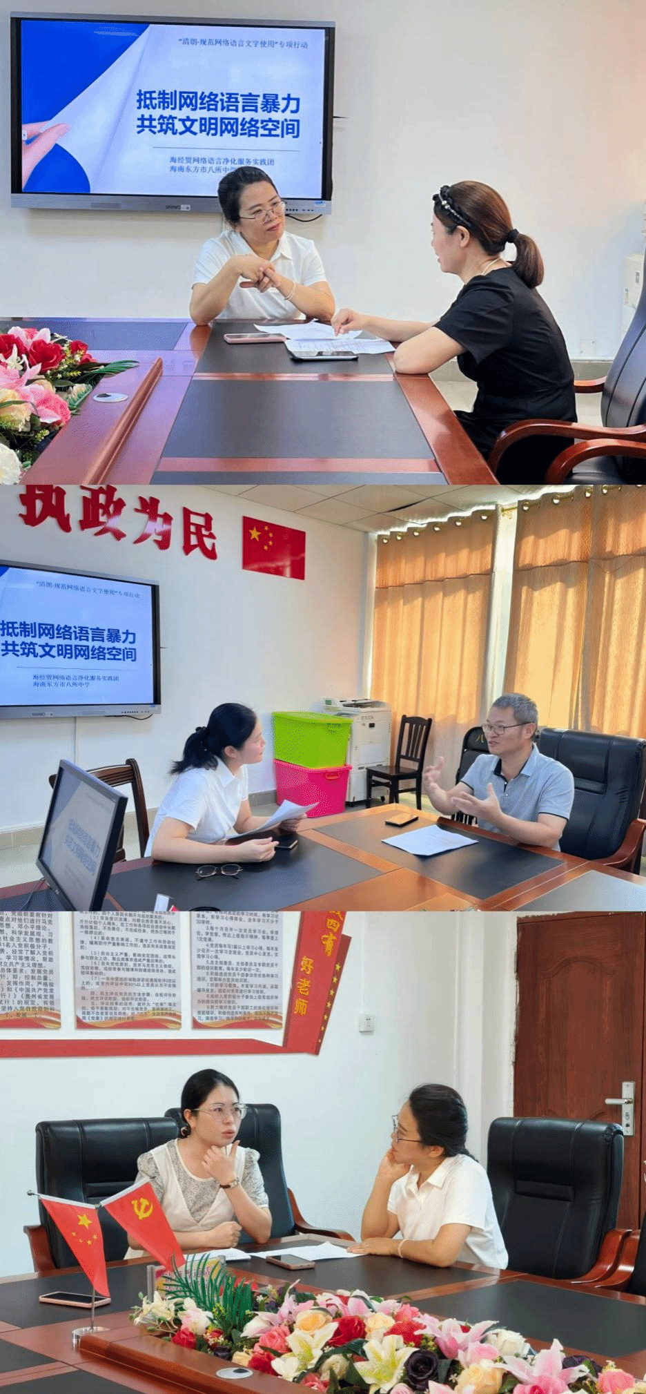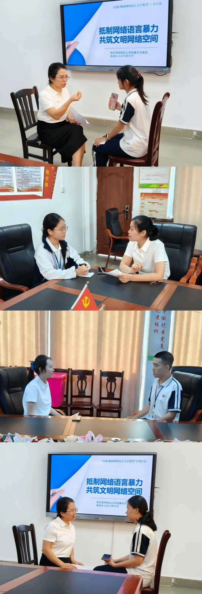 为积极响应国家“清朗・规范网络语言文字使用”号召,助力海南省“网聚时代正能量 共建文明自贸港”建设,9 月3日至5日,beats365亚洲版官网“网络语言净化服务实践团”依托暑期“三下乡”实践活动,深入东方市八所中学,开展了一场主题鲜明、形式多样的“啄木鸟”网络语言专项净化行动。实践团构建 “教师指导领航、员工实践落地”的紧密协作机制,以“线上广域调研 + 线下聚焦实践”打通活动路径,以“语言应用创新研究 + 语言文化优质服务”筑牢实践根基,通过问卷调查、深度访谈、专题讲座、经典诵读等多种形式,用专业知识和青春热情为青少年网络语言环境保驾护航,为自贸港清朗网络空间建设注入青春动能。